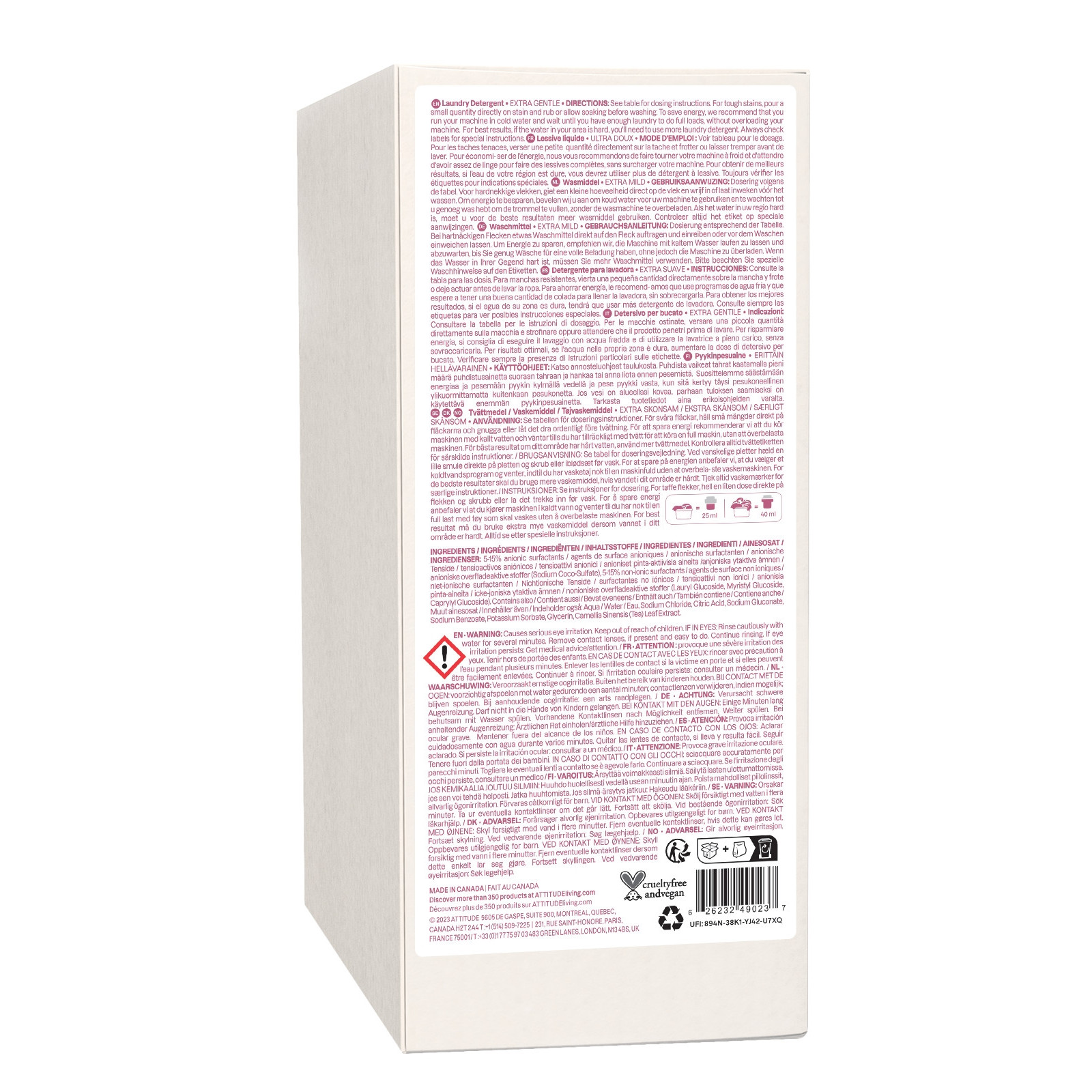 La ligne de produits NATURE + TECHNOLOGY d’ATTITUDE repose sur des ingrédients naturels et végétaux soigneusement sélectionnés pour optimiser la performance de nettoyage sans nuire à l’environnement. En combinant des agents biologiques avec des technologies innovantes, les vêtements sont nettoyés en profondeur, même à basse température.