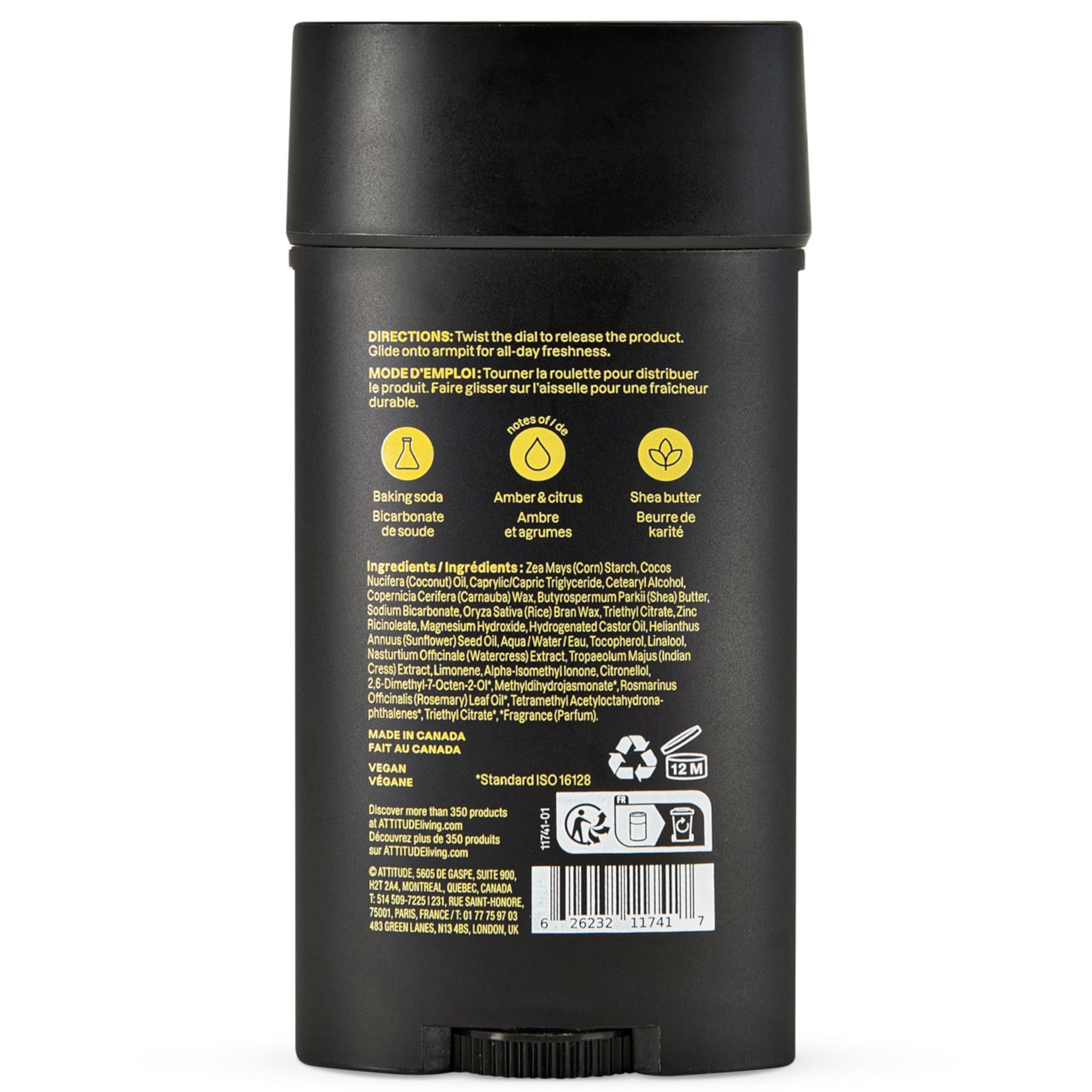Informations sur le produit "ATTITUDE super leaves men Déodorant ambre & agrumes 75g"