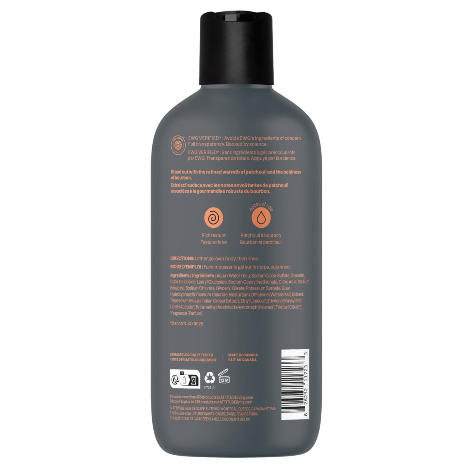 Informations sur le produit "ATTITUDE super leaves men Gel douche bourbon & patchouli 415ml"