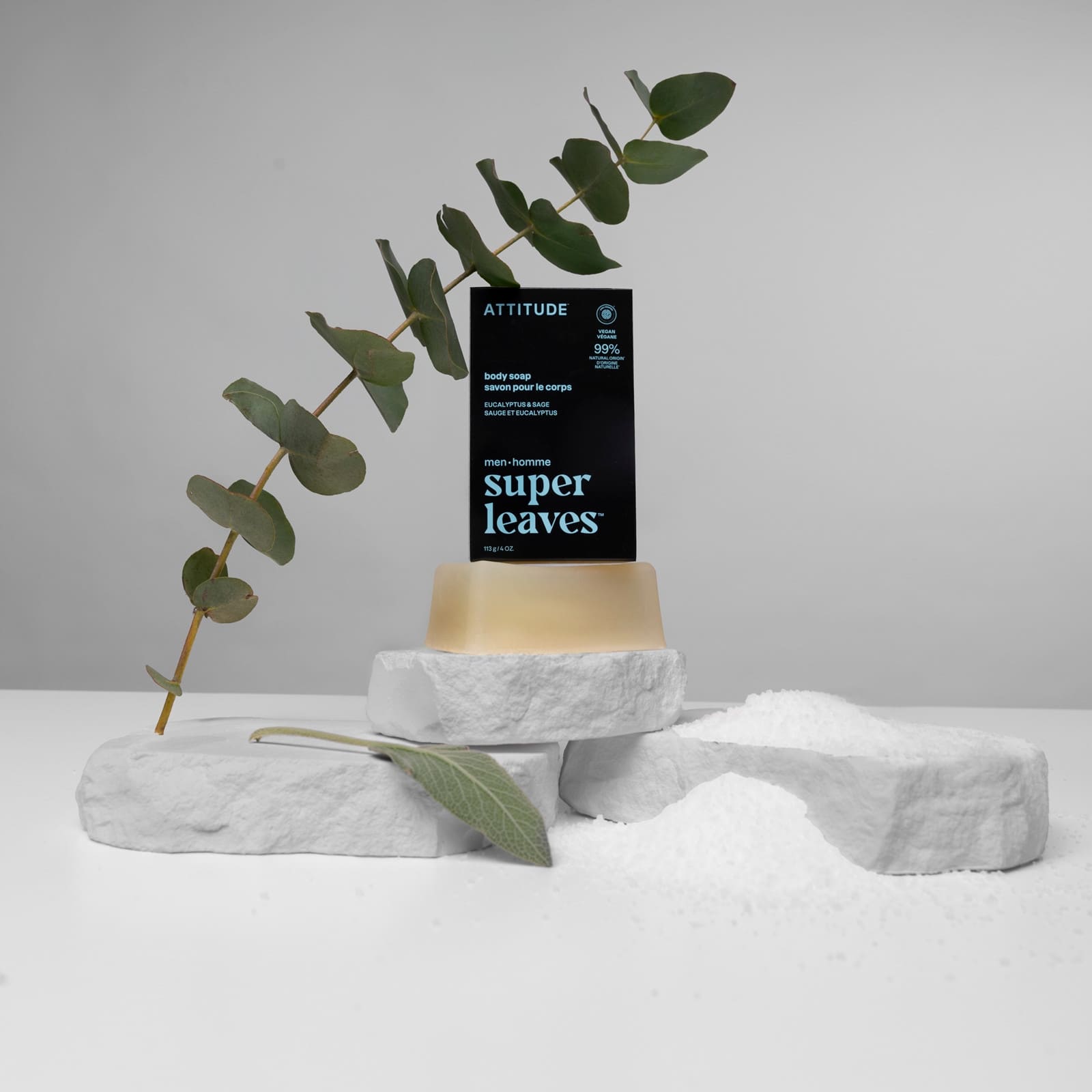 Informations sur le produit "ATTITUDE super leaves men Savon pour le corps sauge & eucalyptus 113g"