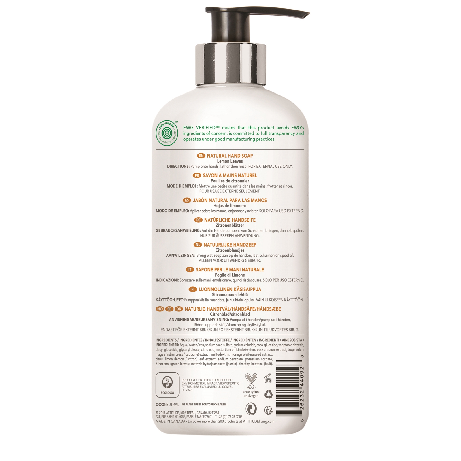 ATTITUDE Superleaves Savon à mains - feuilles de citronnier, 473 ml