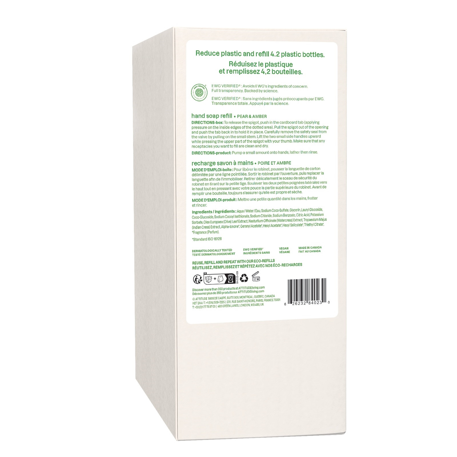 Informations sur le produit "ATTITUDE Superleaves Savon pour mains feuilles d'olivier recharge 2 litres"