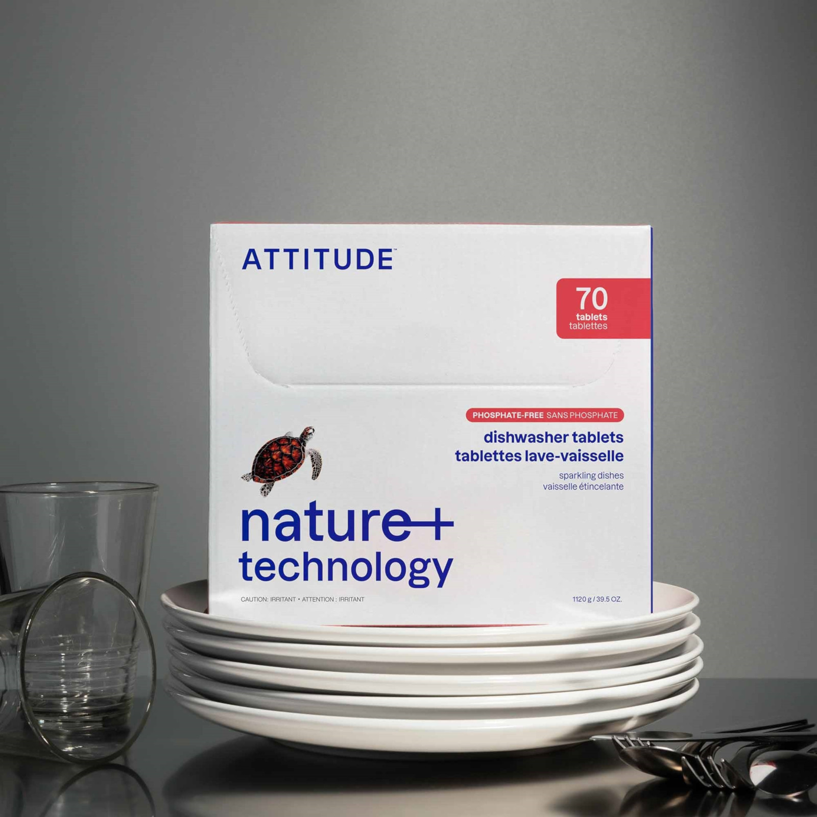 ATTITUDE Tablettes pour lave-vaisselle 70 tablettes – Pouvoir nettoyant durable pour votre vaisselle
