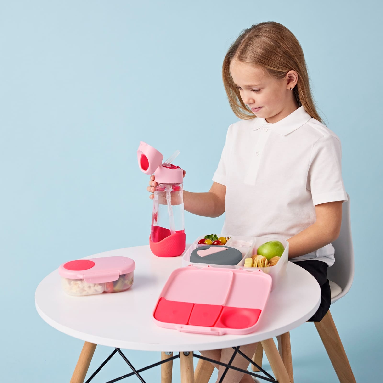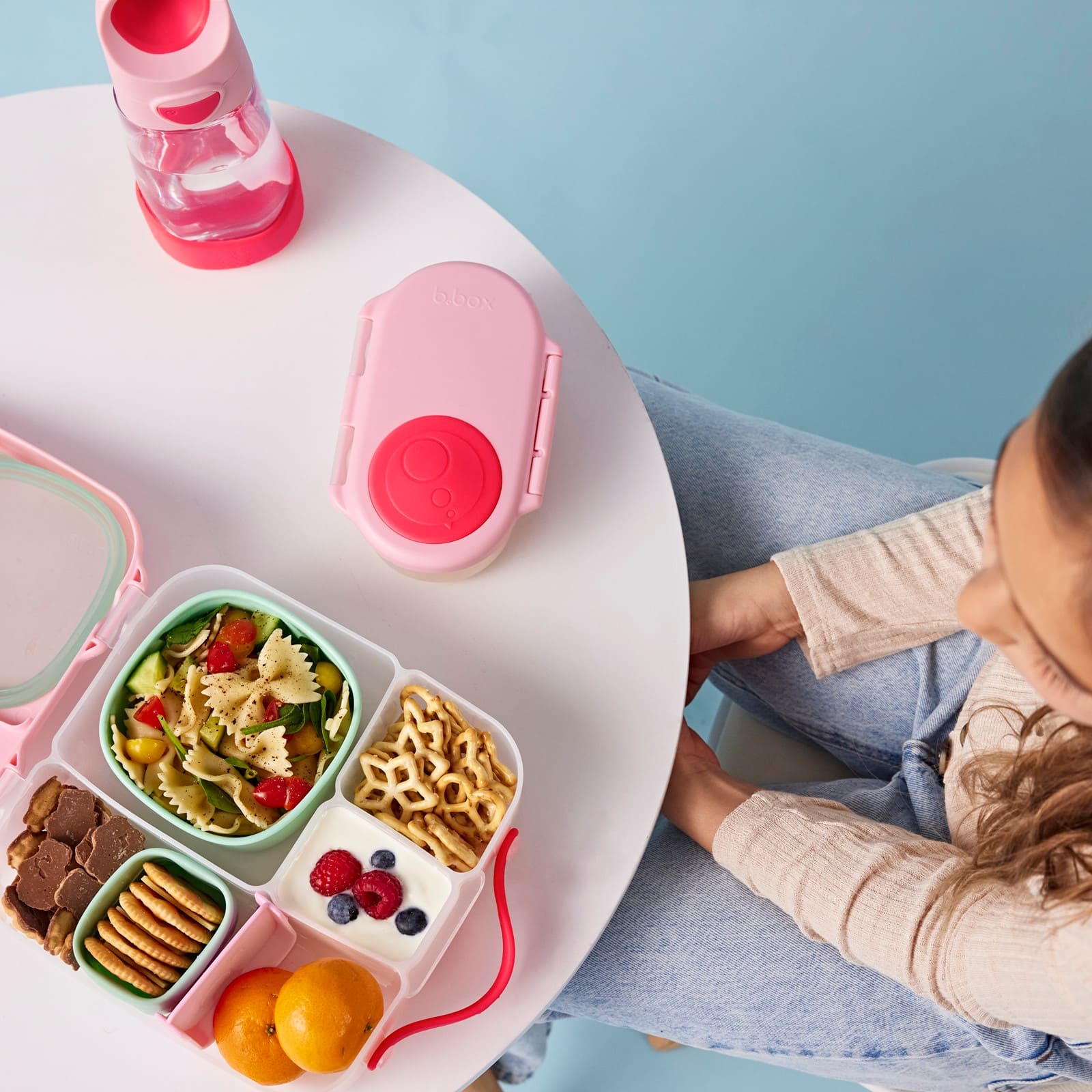 La B.BOX Lunchbox 2L Flamingo Fizz a été spécialement conçue pour les enfants affamés et actifs. Avec un compartiment principal généreux, elle offre suffisamment d’espace pour un sandwich complet, des bretzels, des petits pains ou d’autres snacks préférés. La disposition pratique permet de ranger différents aliments de manière ordonnée tout en les gardant frais.