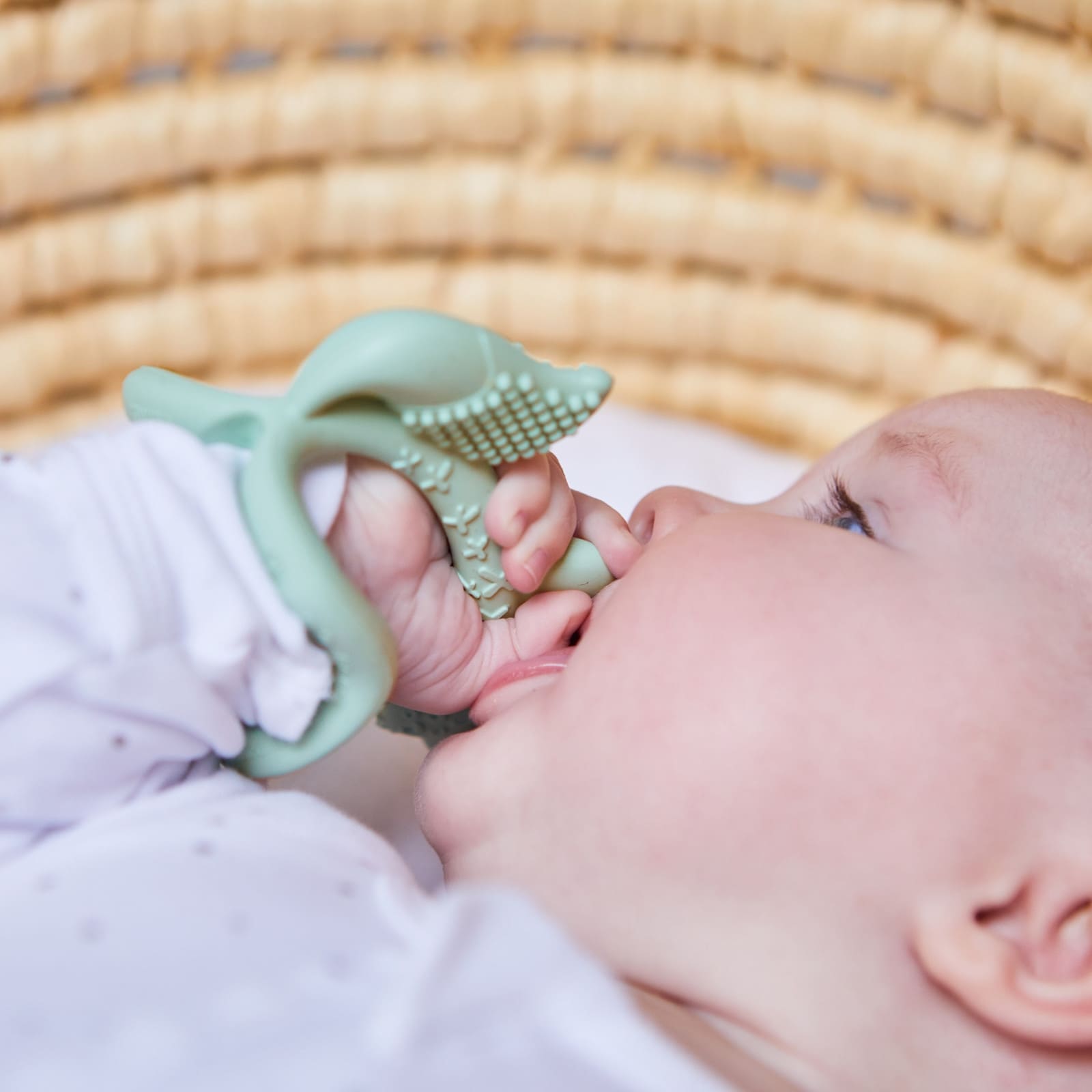 L’anneau de dentition est conçu comme un bracelet qui s’adapte de manière flexible au poignet du bébé. Ainsi, le jouet ne tombe plus et reste toujours à portée de main. Les parents n’ont plus à s’inquiéter que l’anneau de dentition tombe par terre ou soit perdu – un grand avantage dans le quotidien tumultueux avec bébé et en déplacement.