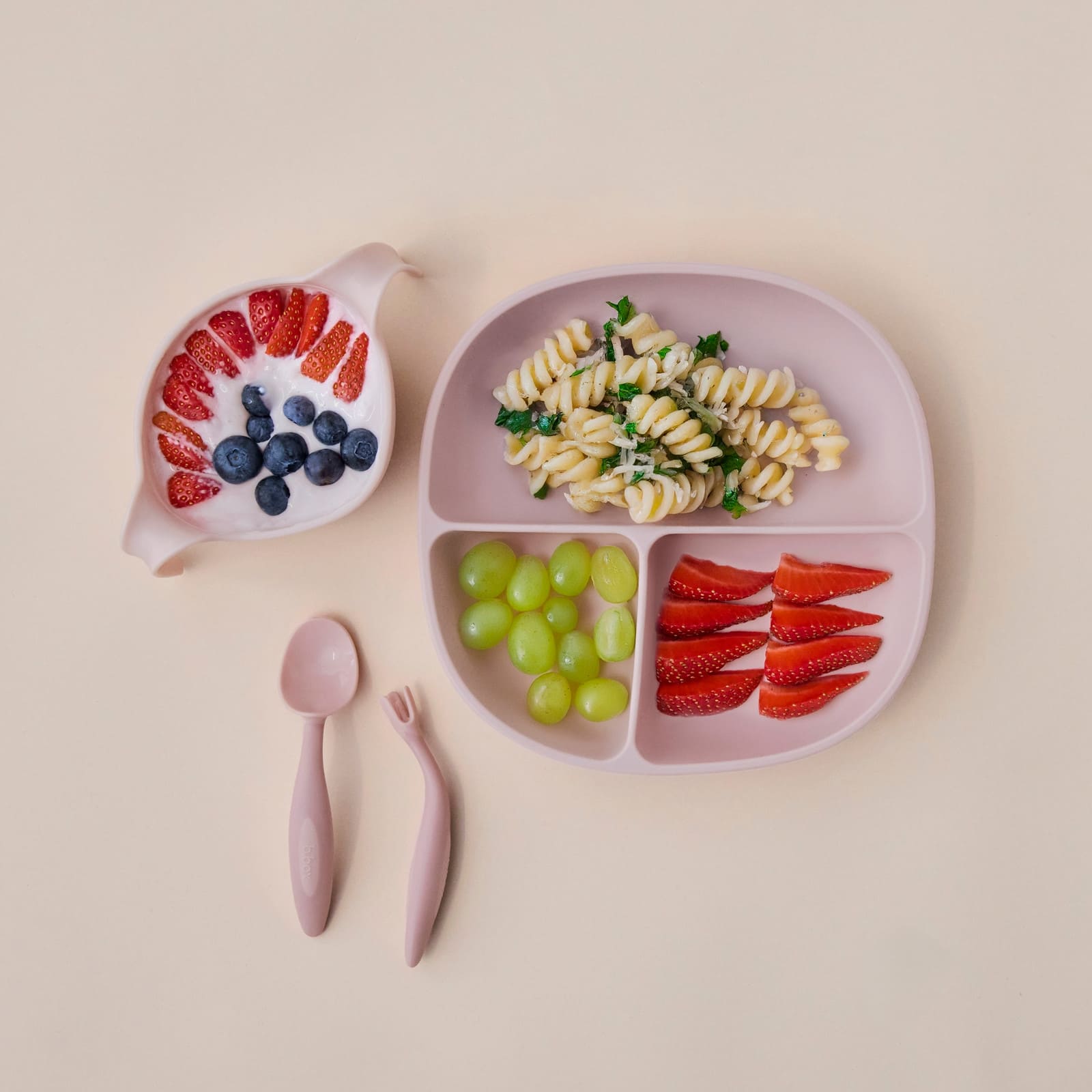 Ce set de couverts est idéal pour les tout-petits qui commencent à manger seuls. Conçu en collaboration avec une ergothérapeute pédiatrique de renom, il accompagne au mieux les enfants dans leur apprentissage de l'alimentation autonome. Les manches ergonomiques et faciles à prendre en main sont parfaitement adaptés au port de la main à la bouche. La grande cuillère permet de ramasser facilement les aliments. Le design FLORK est spécialement adapté à la taille et à la forme des petites bouches, aidant ainsi les enfants à piquer et à saisir les aliments en toute sécurité. Un coffret de voyage pratique est inclus pour un rangement propre. Compatible lave-vaisselle.