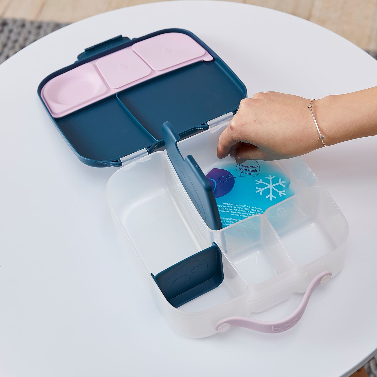 Garder tes aliments frais et au frais est facile avec ce gel réfrigérant. Ce petit gel se glisse sous le plateau à sandwich de la boîte à lunch b.box. Congele-le pendant la nuit, puis place-le dans la boîte à lunch au moment de préparer ton repas. Il est fabriqué en gel non toxique de qualité alimentaire.