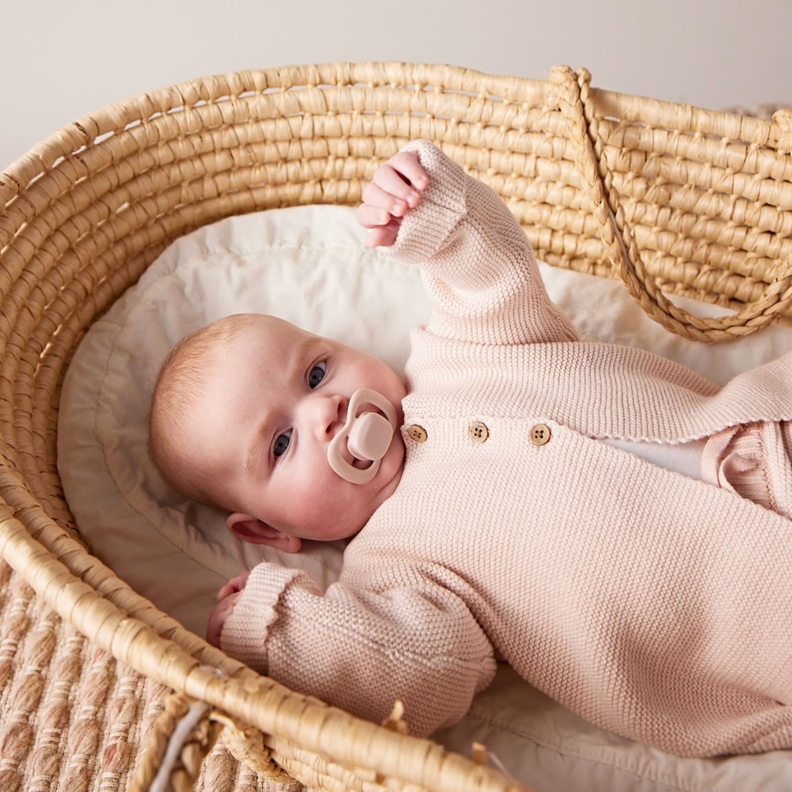 Grâce au design symétrique de la collerette, la sucette peut être retournée de 180 degrés sans altérer sa fonction. Cela la rend particulièrement conviviale et assure un ajustement optimal dans la bouche du bébé.
