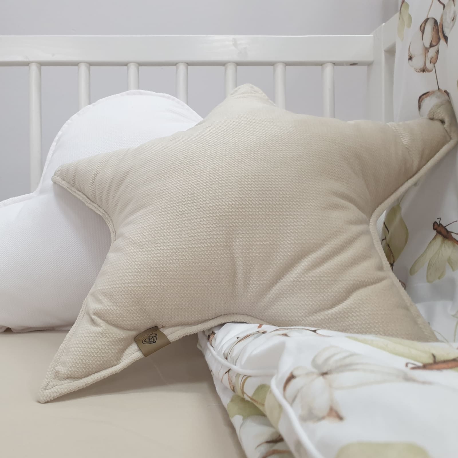 Coussin décoratif BISAL étoile beige – Accents chaleureux pour la chambre d’enfant