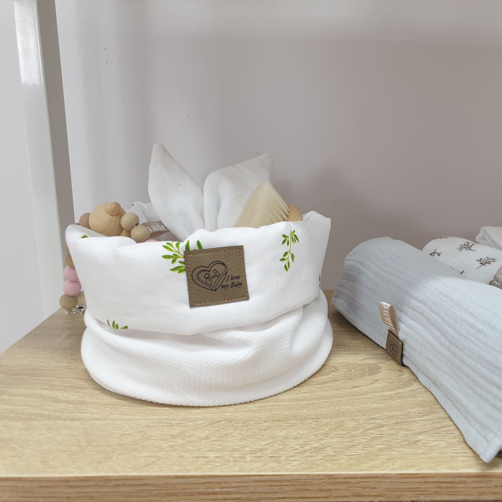 Le panier décoratif BISAL feuilles blanc est idéal pour ranger les couches, articles de toilette et autres accessoires pour bébé. Grâce à sa taille maniable, il offre suffisamment d’espace pour tous les objets essentiels nécessaires au quotidien avec un bébé. Ainsi, la chambre d’enfant reste toujours propre et bien organisée.