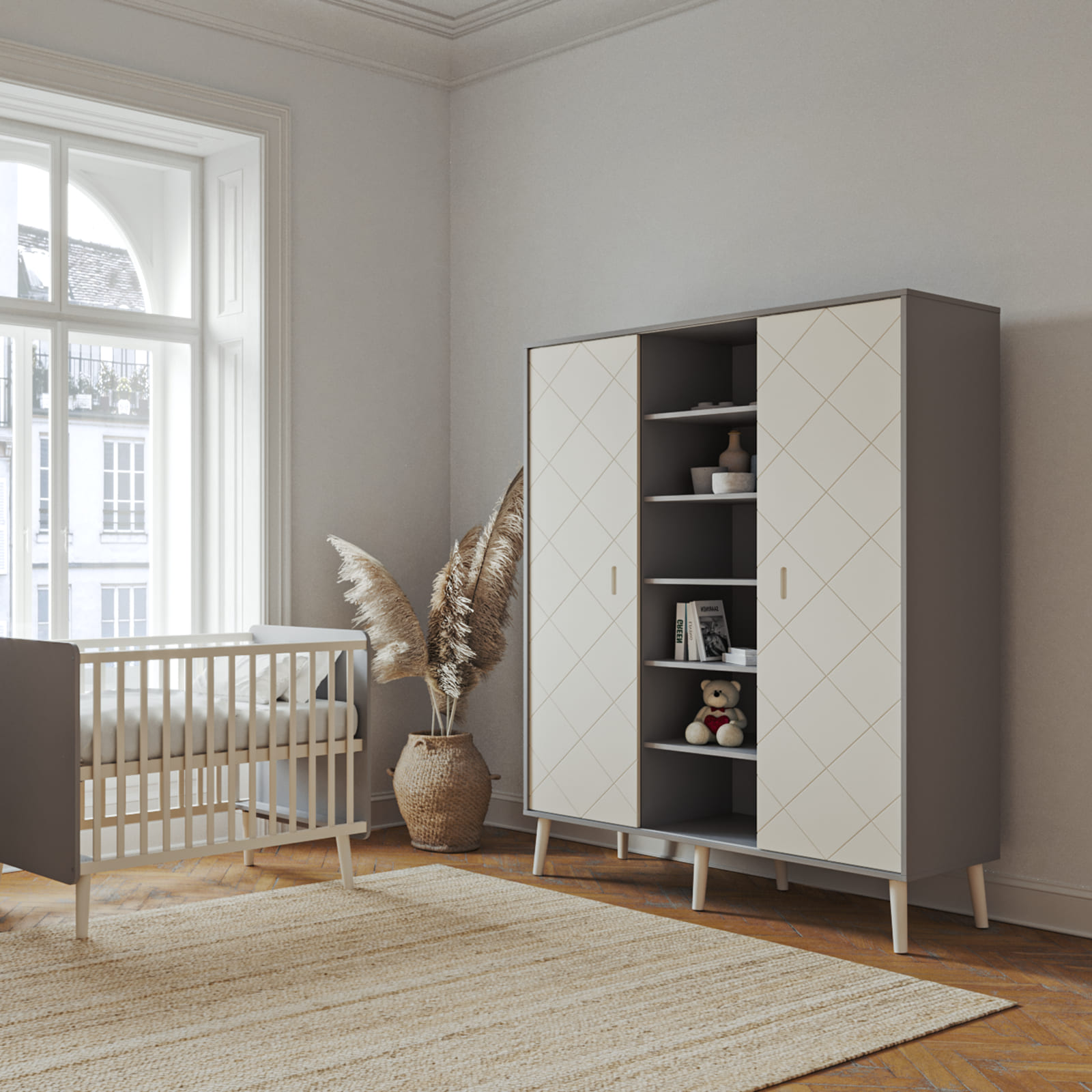 Armoire BISAL Peak XL gris-blanc – Beaucoup d’espace de rangement pour la chambre d’enfant