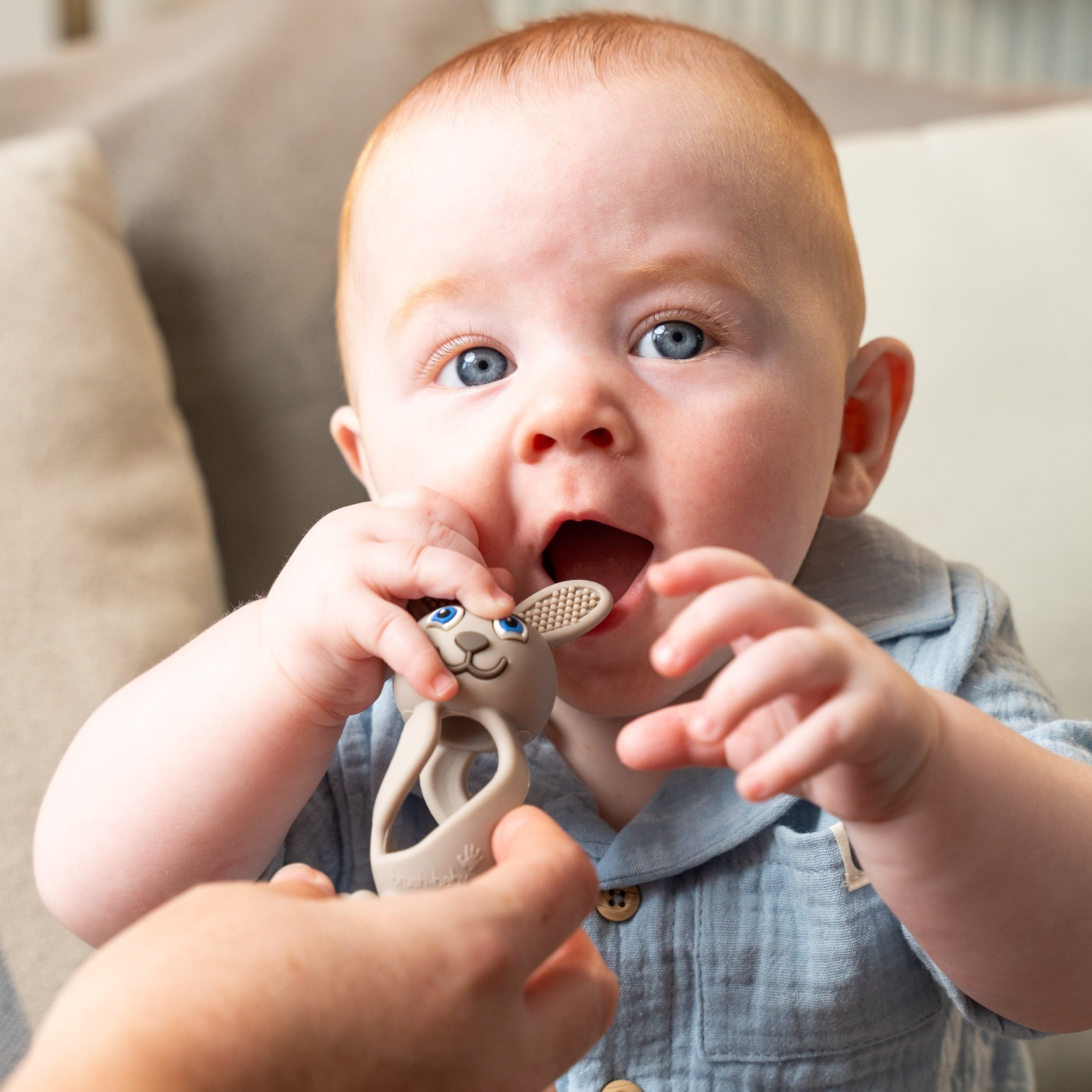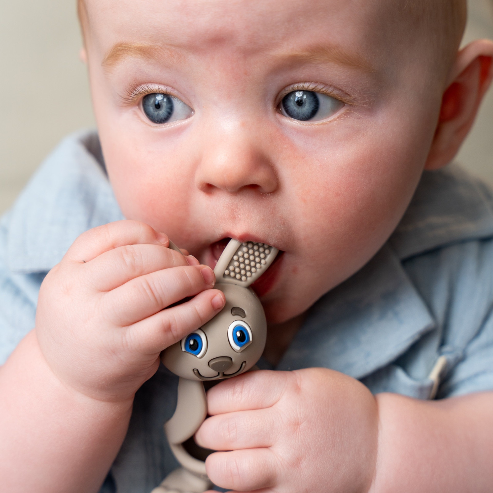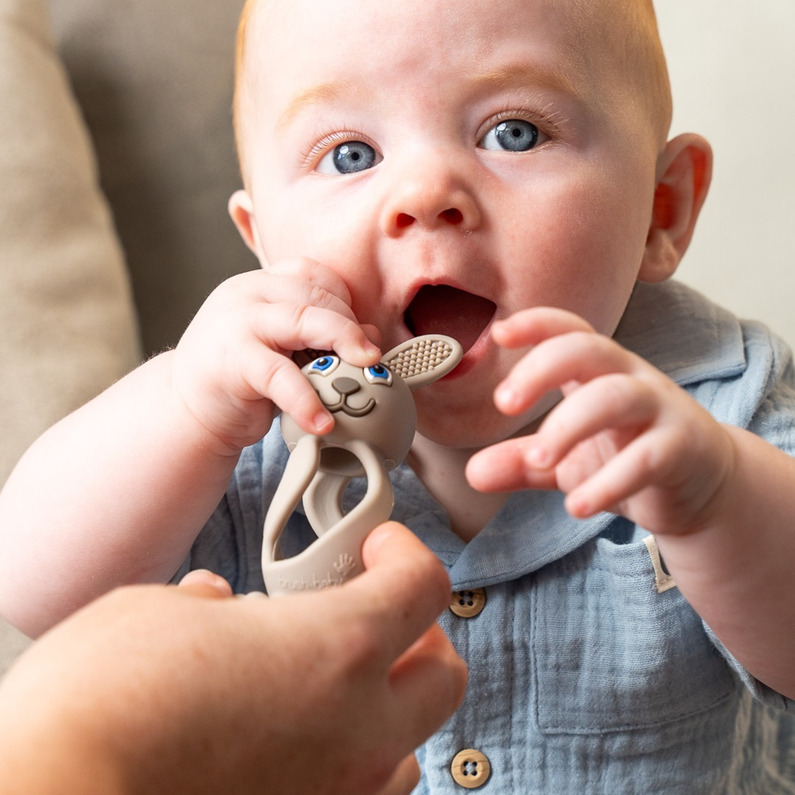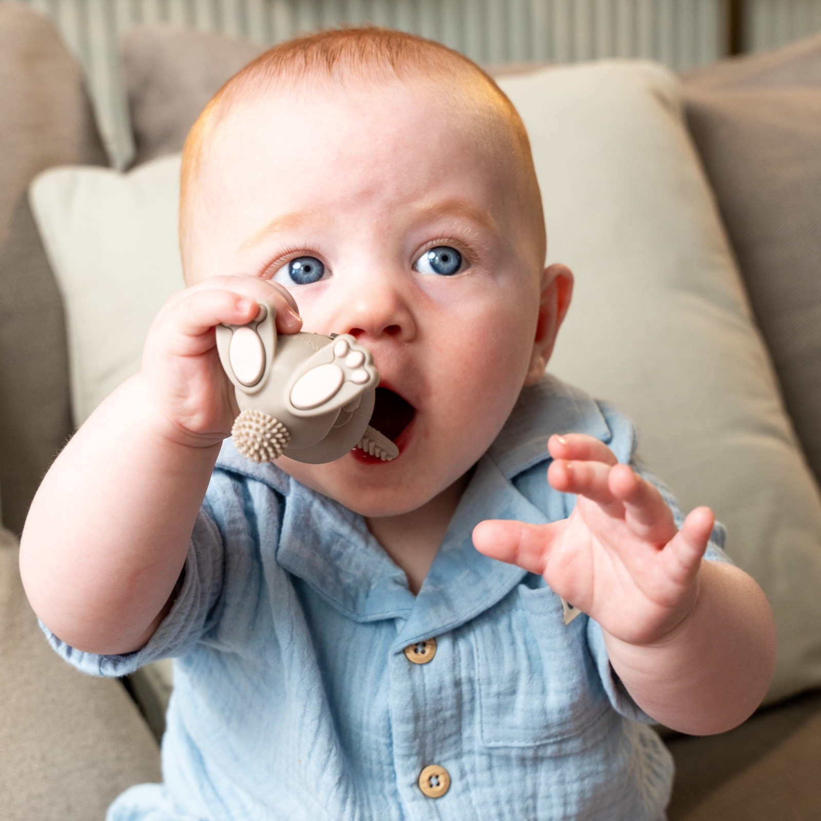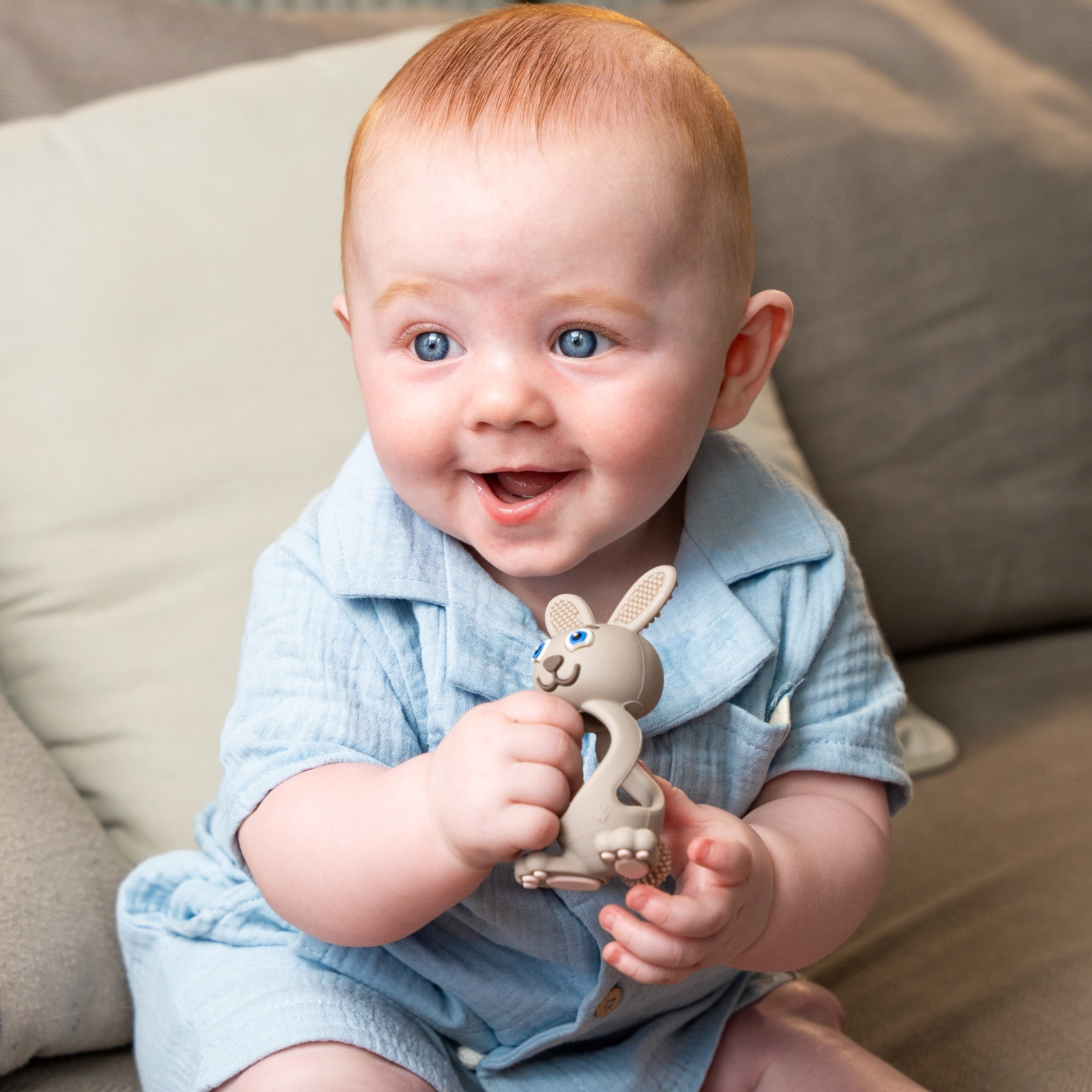 Bobbie Bunny aide non seulement à soulager les douleurs liées à la dentition, mais contribue aussi au développement musculaire de la mâchoire. La mastication renforce les muscles de la mâchoire, ce qui est important pour le développement du langage et le contrôle de la langue. Cela aide votre bébé à manger et à parler plus facilement par la suite.