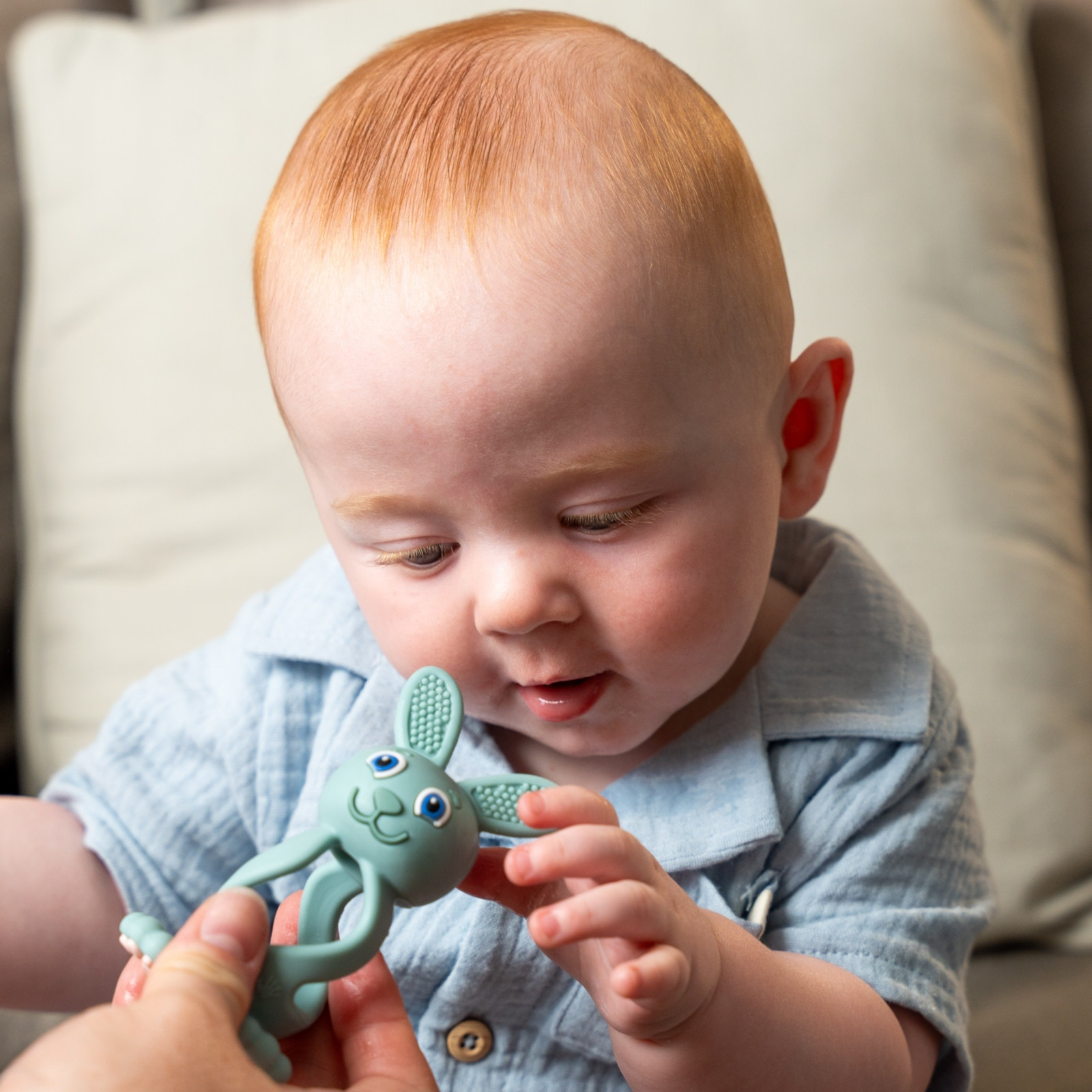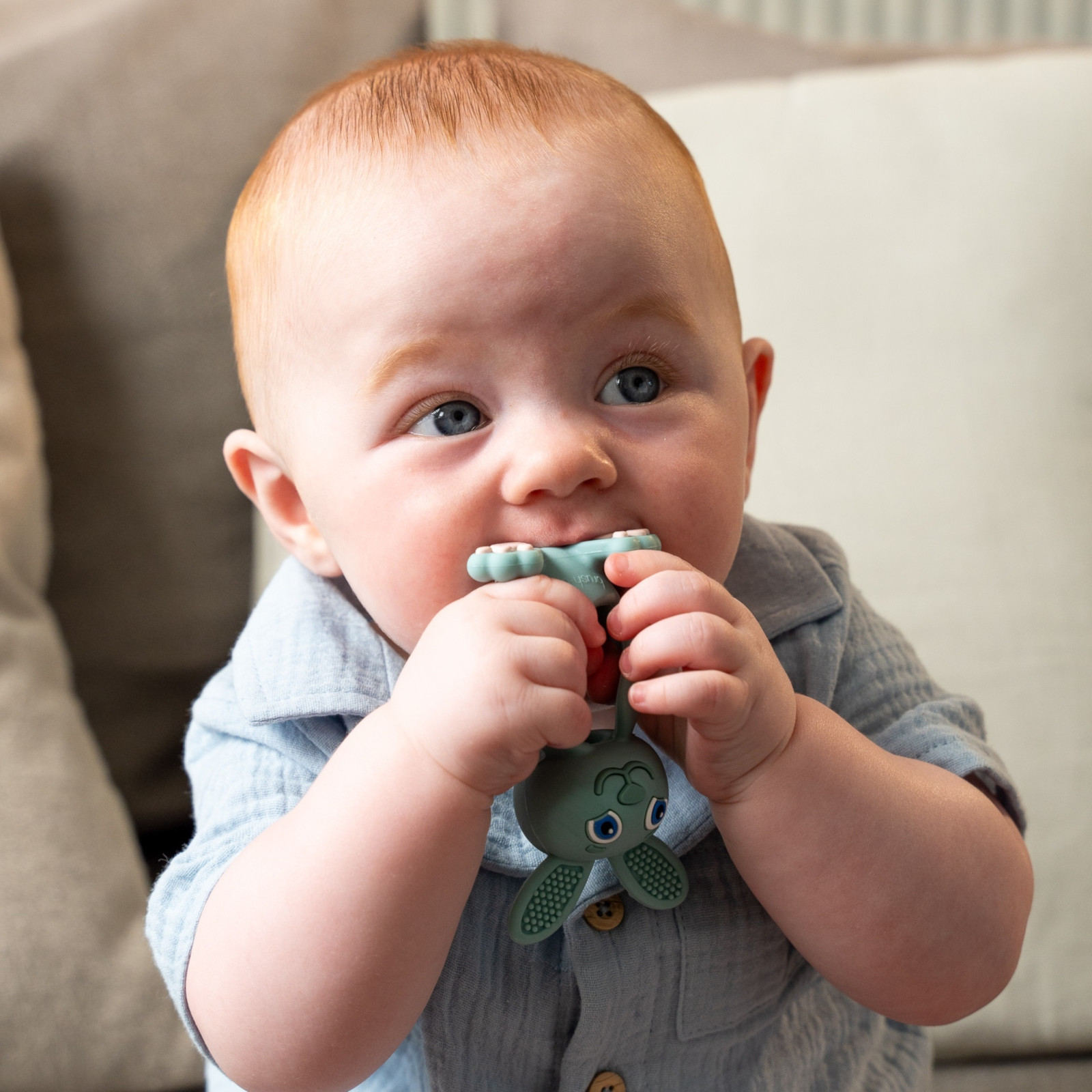 BRUSH-BABY Anneau de dentition Bobbie Bunny eucalyptus – un compagnon doux pendant la poussée dentaire