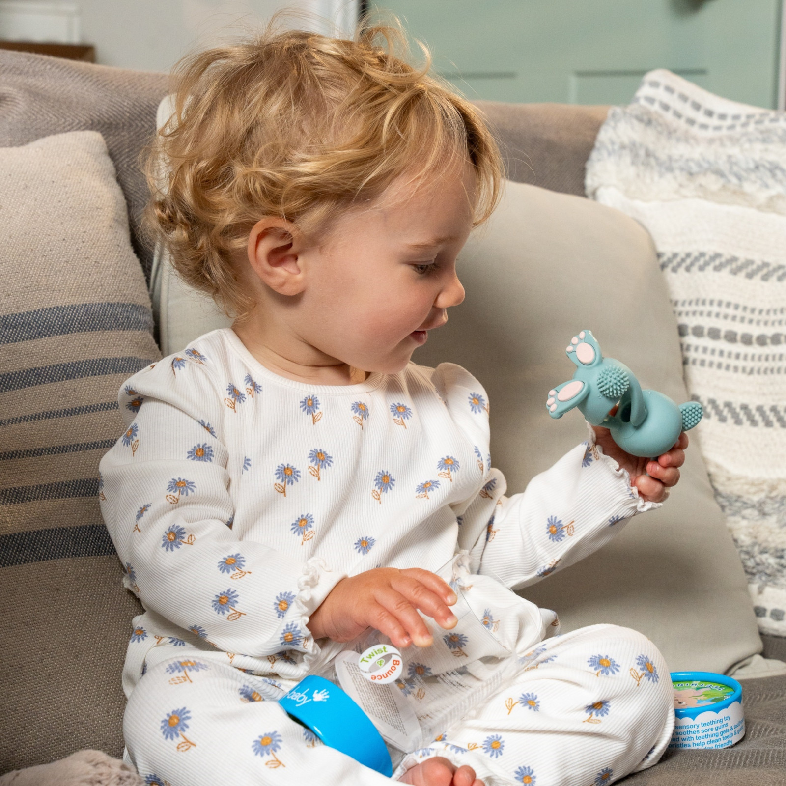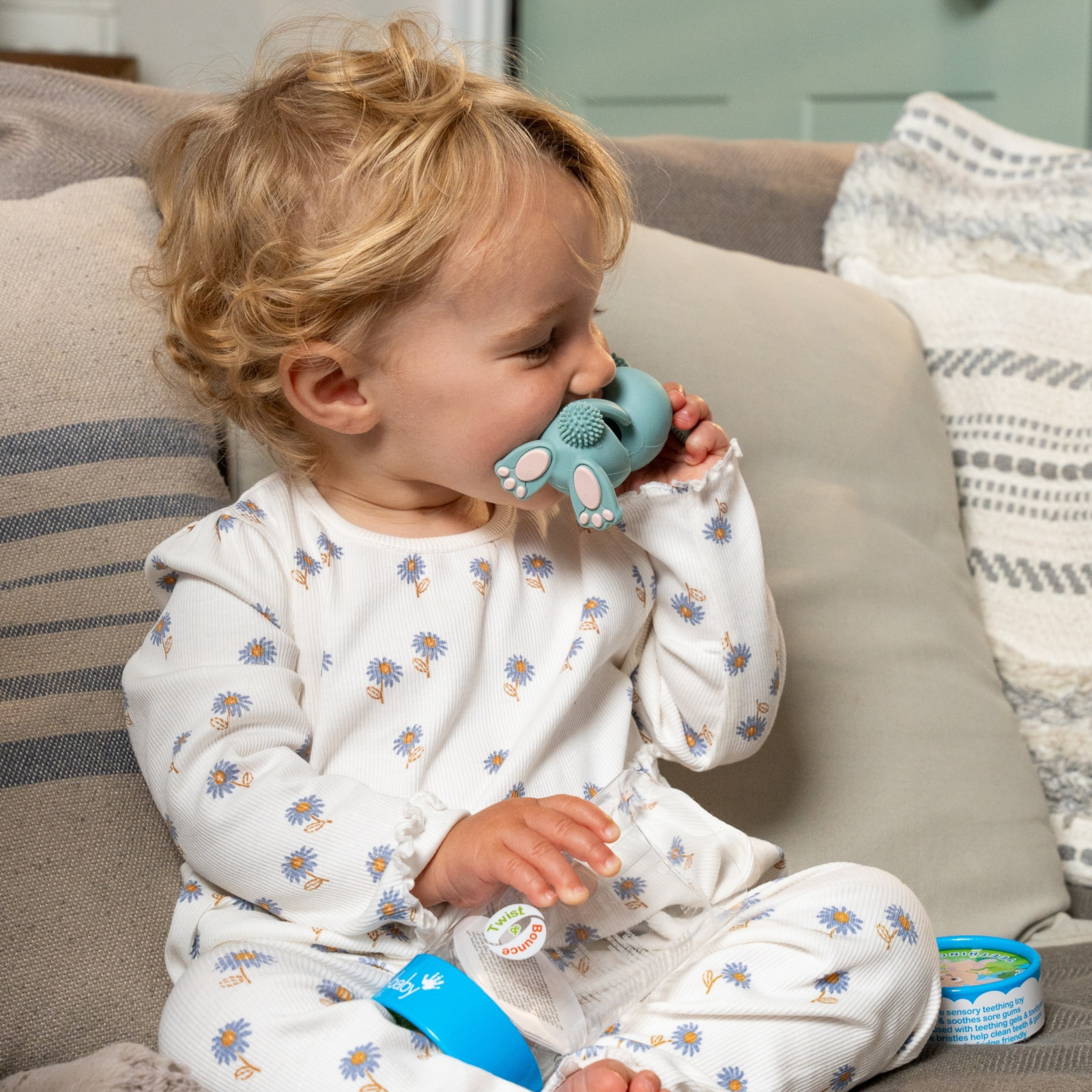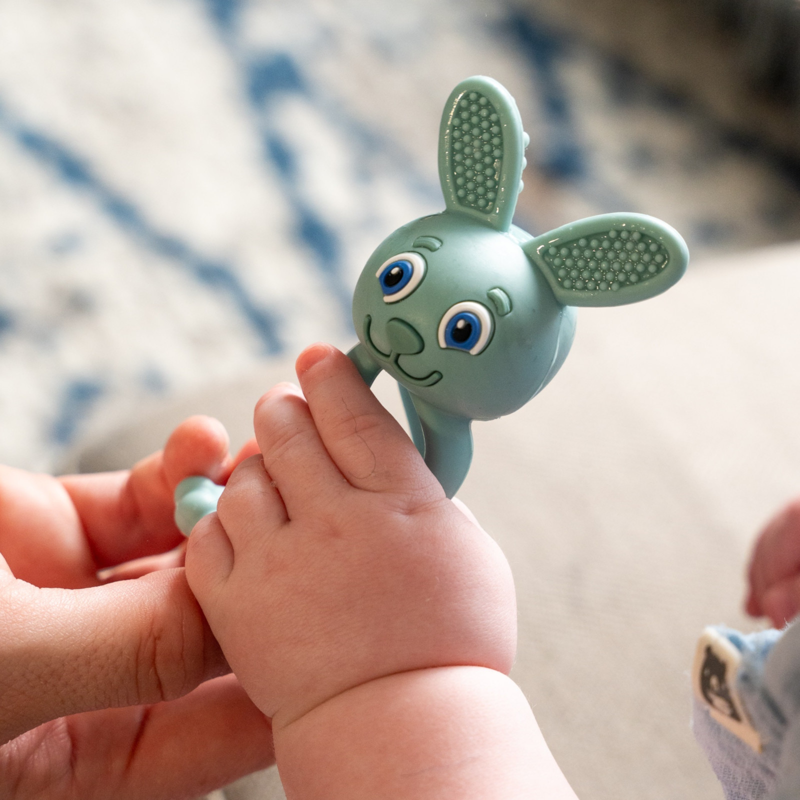 L'anneau de dentition séduit par ses différentes surfaces texturées aux pieds, aux oreilles et à la queue, qui encouragent spécialement la mastication. Ces surfaces ont été soigneusement conçues pour répondre aux besoins variés des différentes phases de la poussée dentaire. Ainsi, Bobbie Bunny contribue non seulement à apaiser les gencives sensibles, mais stimule aussi les sens tactiles de votre enfant.