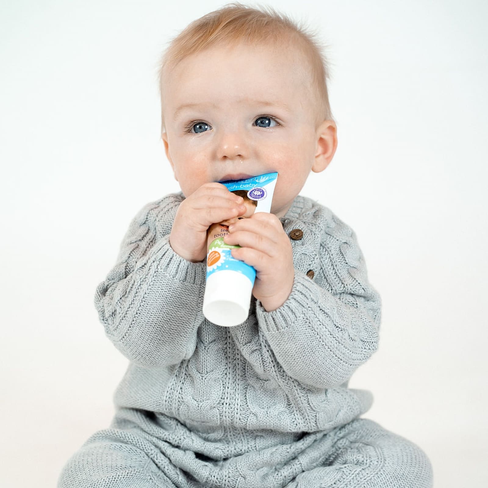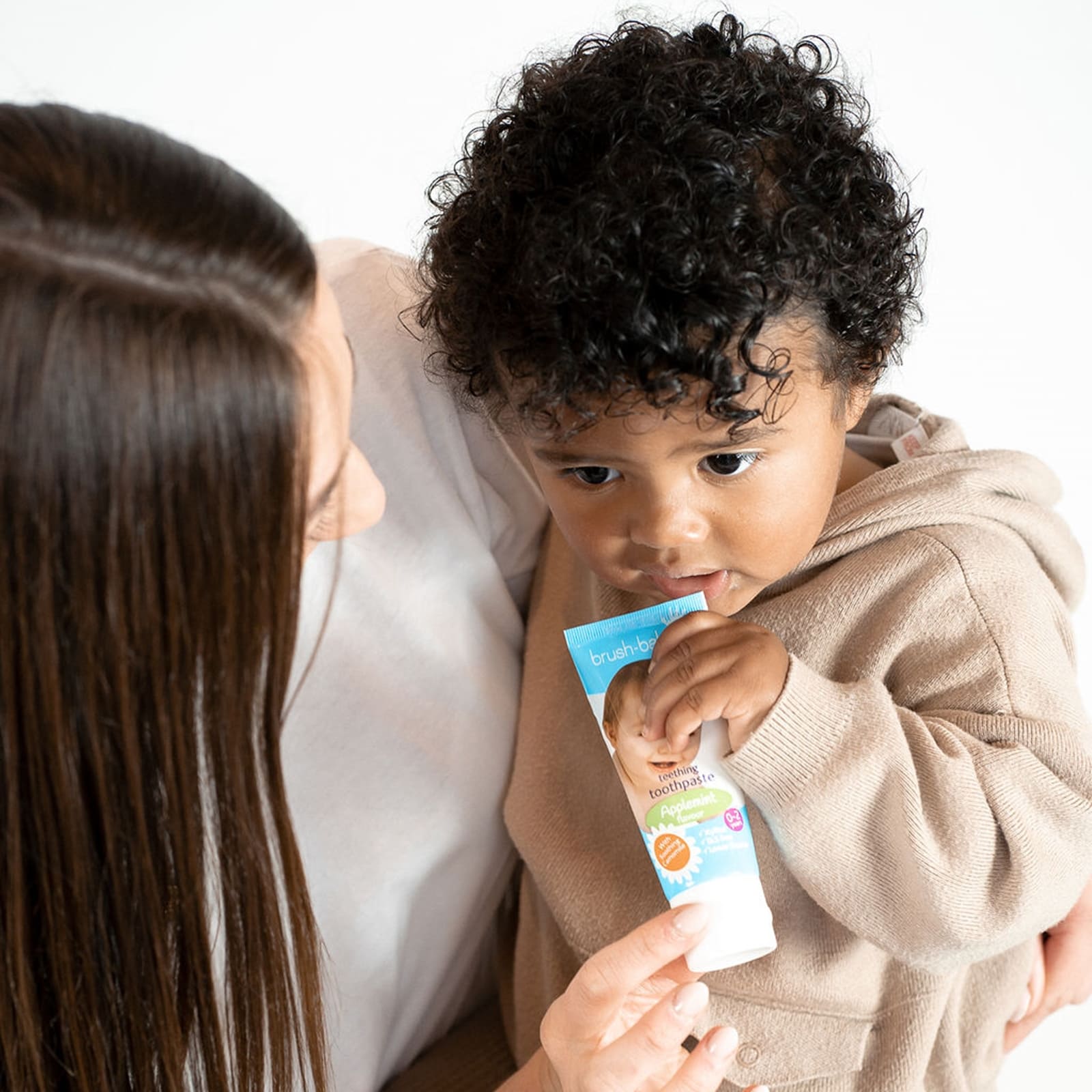 Le dentifrice bébé BRUSH-BABY a été spécialement conçu pour prendre soin des dents sensibles et des gencives délicates des bébés pendant la poussée dentaire et pour les apaiser. Sa formule soigneusement équilibrée soutient l’hygiène dentaire de manière douce et assure que votre enfant vive le brossage des dents de façon agréable. Le dentifrice est particulièrement doux pour prévenir les irritations.