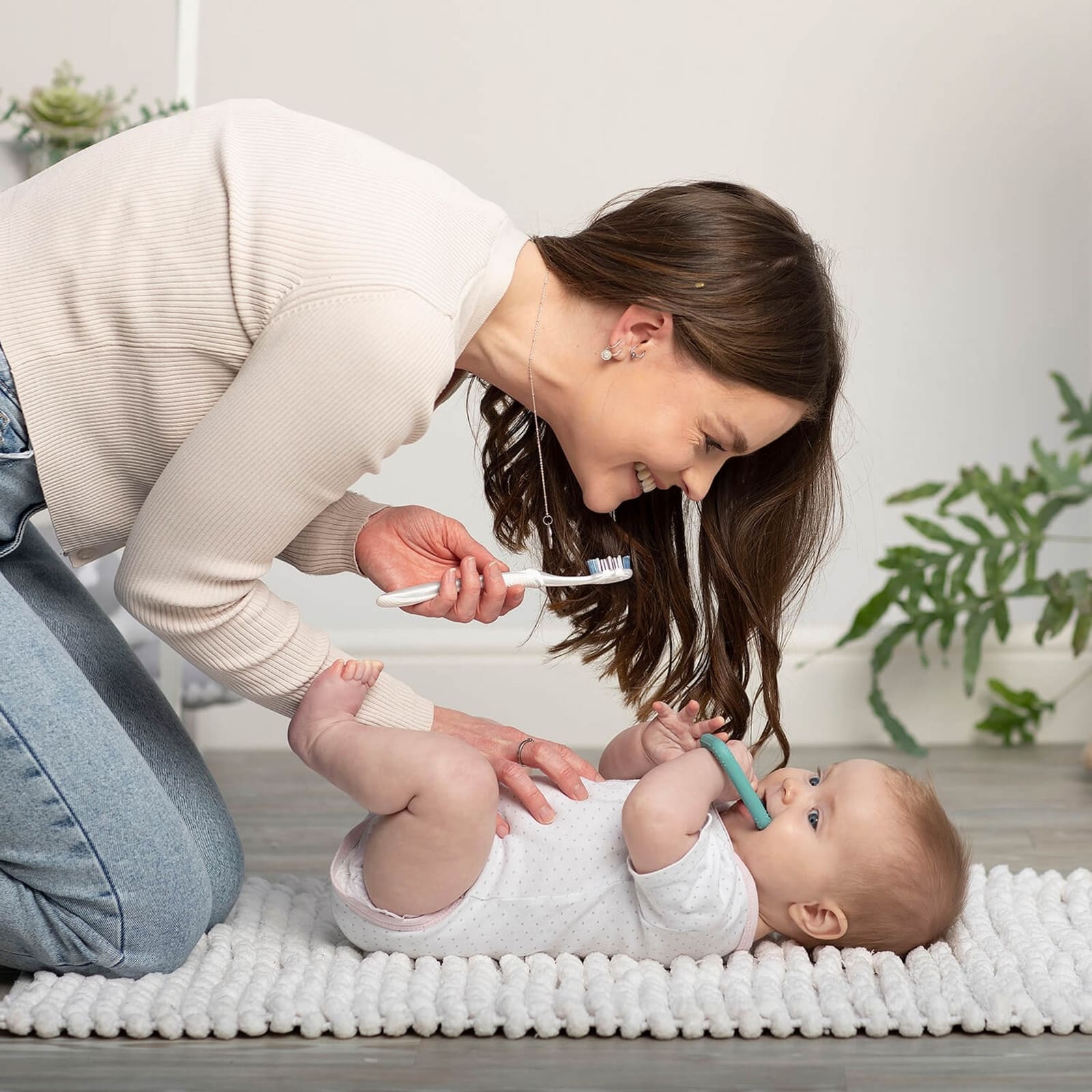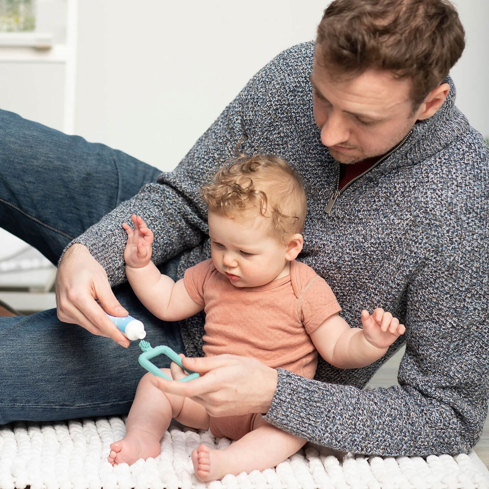 La Flexi-Brush a été spécialement conçue pour masser et nettoyer en douceur les premières dents et les gencives. Avec sa petite tête et ses poils souples en silicone, elle est idéale pour les bouches sensibles. Grâce à sa prise à deux mains, bébé peut la tenir facilement et développer de bonnes habitudes de brossage en s’amusant. Les parents peuvent également aider au brossage pour instaurer dès le début une routine de soins dentaires. La Flexi-Brush peut aussi être utilisée pour appliquer du gel gingival ou du dentifrice. Elle se nettoie facilement au lave-vaisselle ou au stérilisateur.