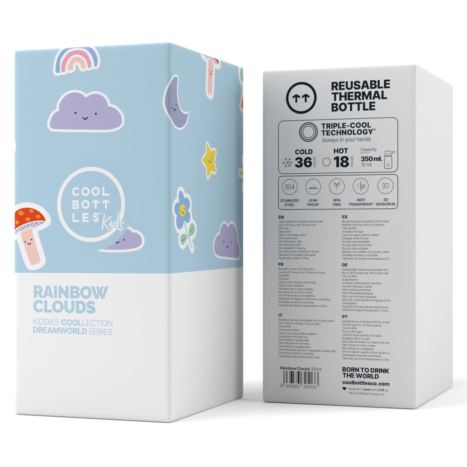 Informations sur le produit "COOL BOTTLES Bouteille isotherme The Kiddie Bottle Rainbow Clouds 350ml"