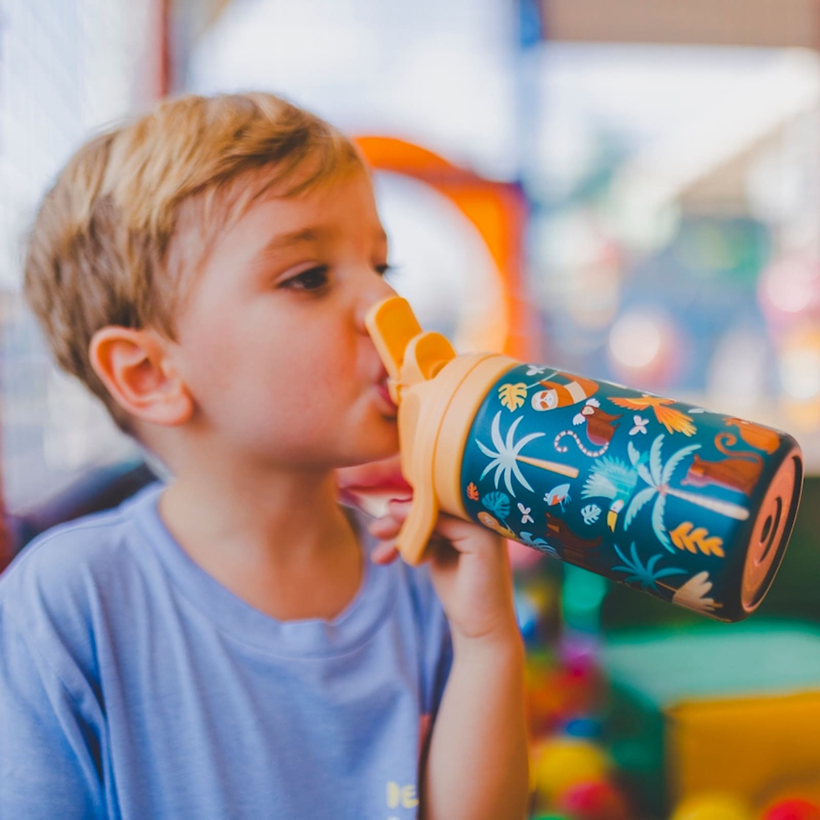 La gourde Kiddies de 350ml accompagne les tout-petits de 12 mois et plus dans toutes leurs aventures, de l'école aux sorties en passant par les après-midis de jeux. Son embout en silicone avec système Biteflow permet de boire facilement en mordant, et son système de fermeture à clic protège la gourde de la poussière, des germes et de la saleté. Avec sa capacité de 350 ml et ses magnifiques impressions 3D en poudre, elle offre une expérience sensorielle que les enfants adoreront. Fabriquée en acier inoxydable 18/8, elle est sans BPA, non toxique et inodore, et dispose d'une poignée intégrée pour un transport confortable. Son large bouchon, doté du système exclusif UNIFY, permet de l'utiliser avec les gourdes de sport, et sa large ouverture facilite l'ajout de glaçons. Totalement étanche, elle résiste à la transpiration et, grâce à la technologie Triple Cool™, conserve les boissons froides jusqu'à 36 heures et chaudes jusqu'à 18 heures. Une combinaison parfaite de design, de sécurité et de performance pour hydrater les enfants avec style. Lavage à la main uniquement.