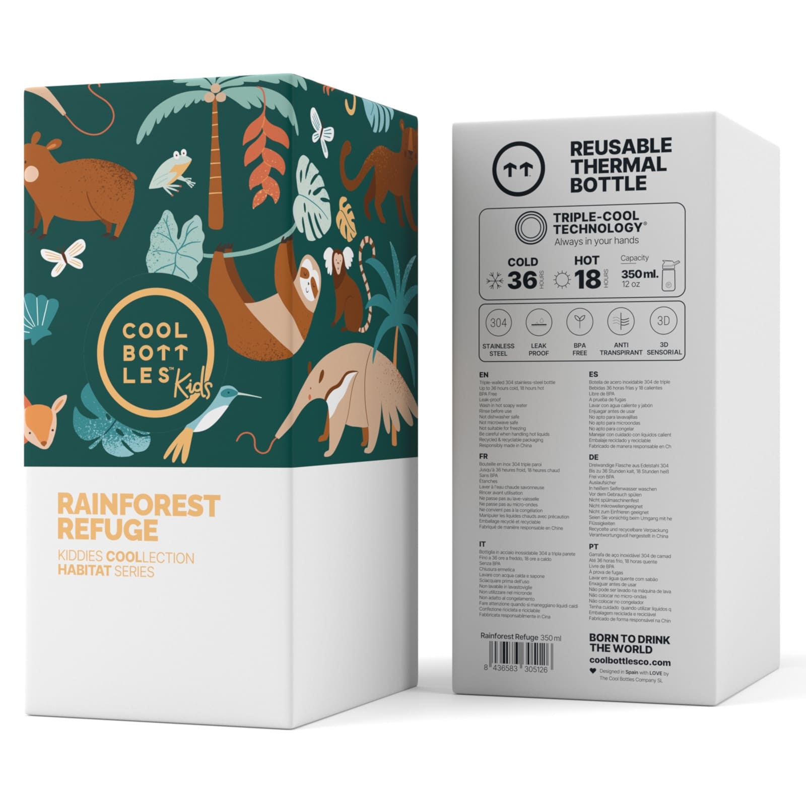 Informations sur le produit "COOL BOTTLES Bouteille isotherme The Kiddie Bottle Rainforest Refuge 350ml"