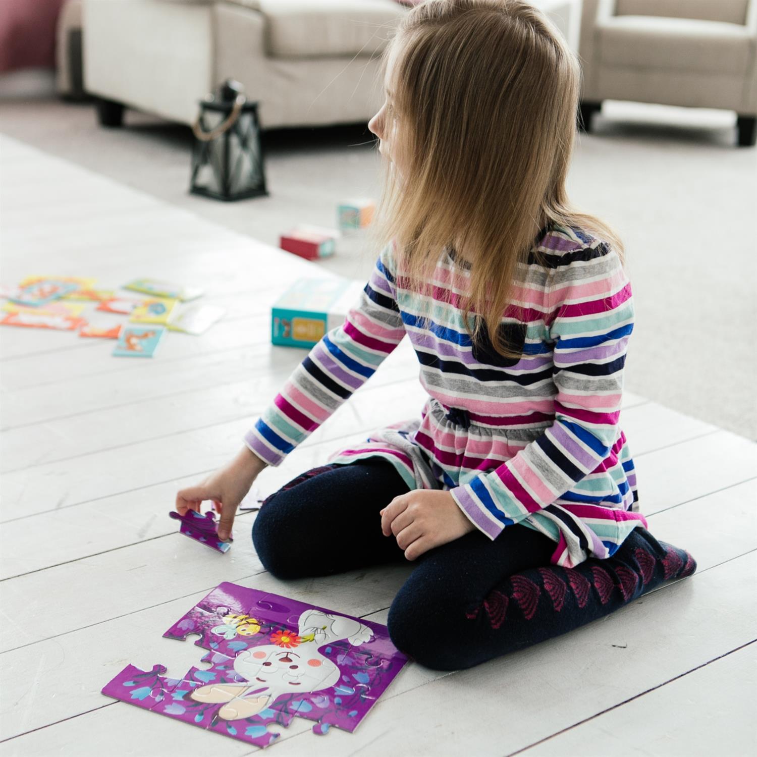 En assemblant le puzzle, les enfants exercent leur motricité fine et leur capacité de représentation spatiale. Le coloriage du verso favorise en plus la coordination main-œil et l’expression créative. Cette combinaison aborde différentes sphères d’apprentissage, particulièrement importantes durant la phase de développement précoce.