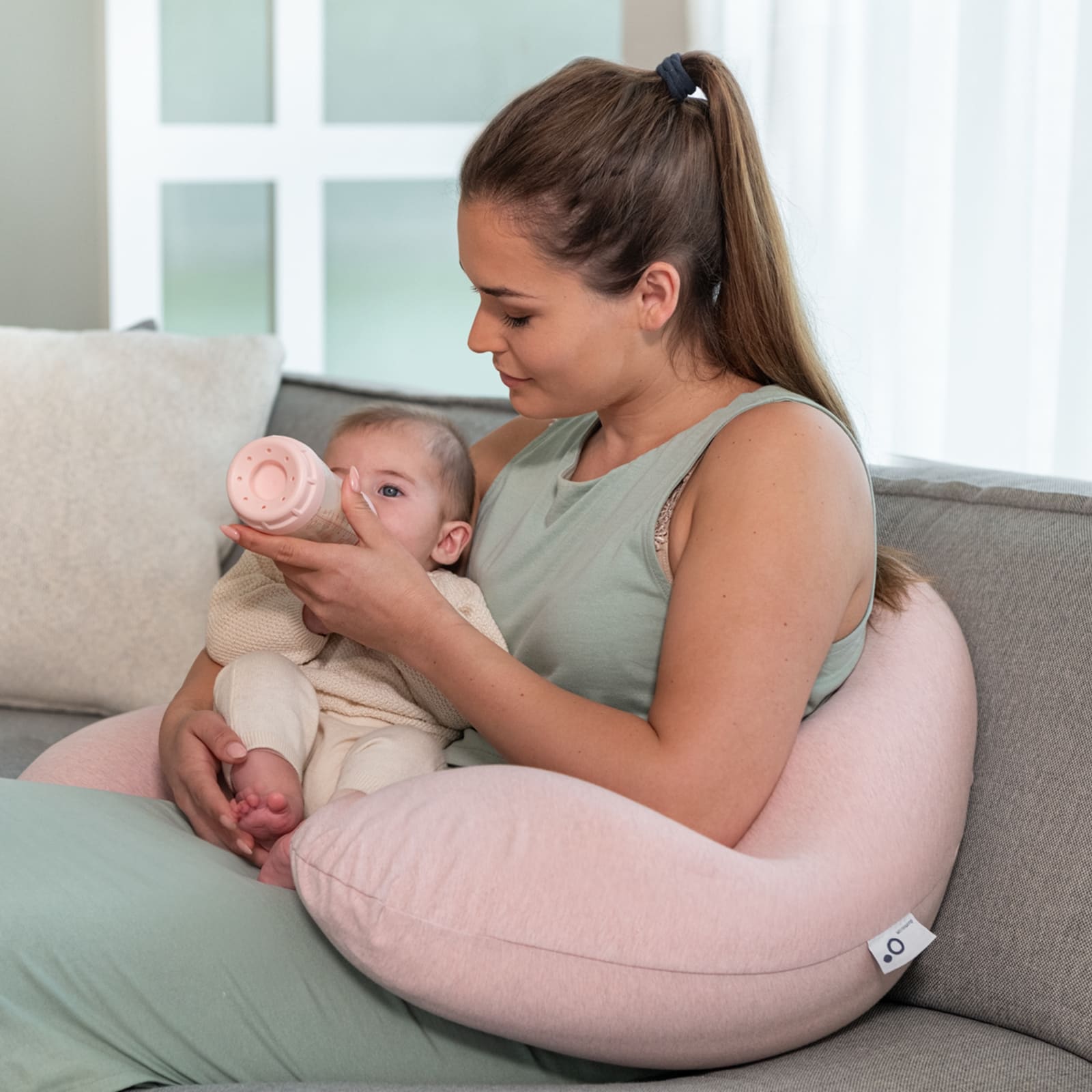 Particulièrement pendant l’allaitement, le coussin est un compagnon utile : il offre une position stable et confortable, bénéfique à la fois pour la mère et pour le bébé. Le bébé peut s’y allonger détendu et en sécurité, rendant l’allaitement plus paisible et agréable.