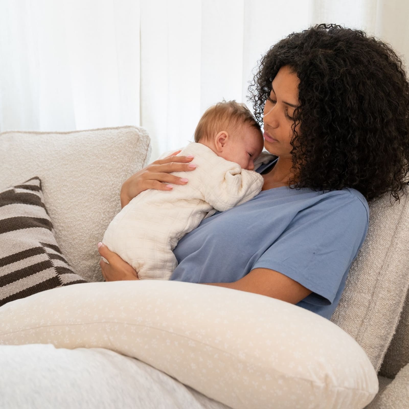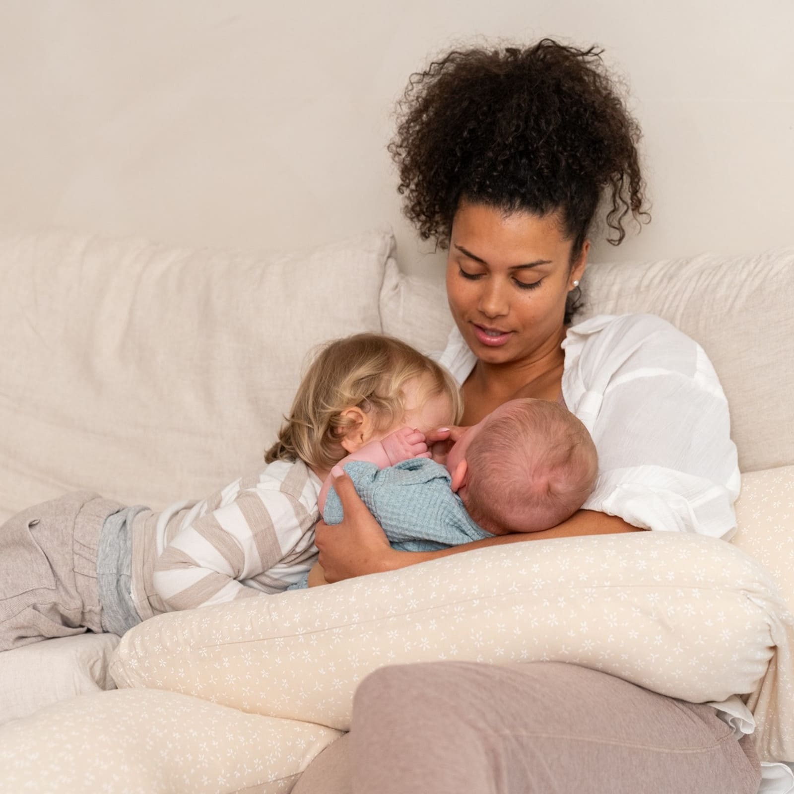Même après la grossesse, le coussin reste très fonctionnel : le petit coussin amovible est idéal comme coussin d’allaitement. Il offre un soutien confortable lors des phases de nourrissage, permettant à la mère et au bébé de s’asseoir détendus côte à côte. Ce produit vous accompagne donc longtemps au-delà de la grossesse.
