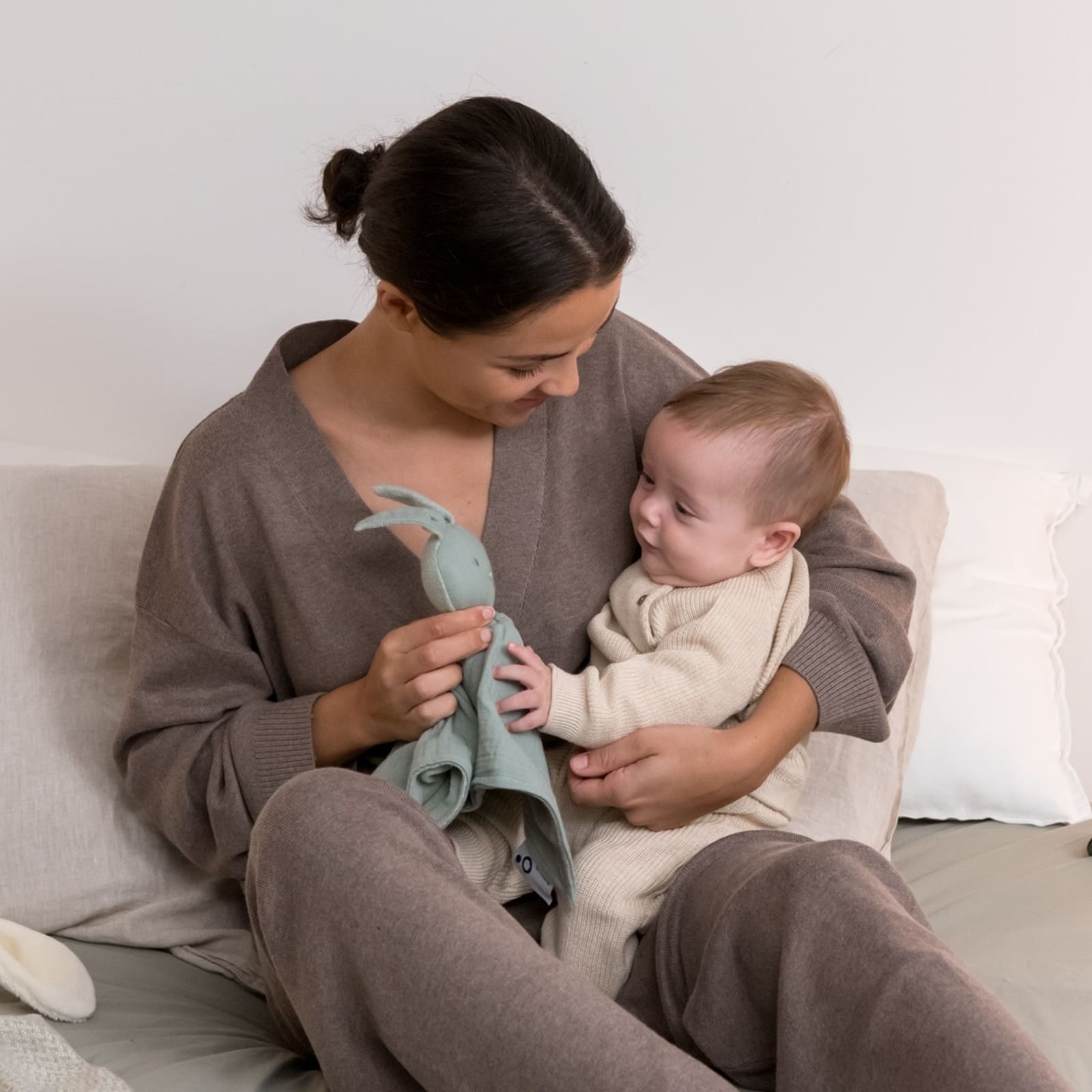 Une caractéristique centrale du mouchoir doudou You & Me est sa capacité à conserver et transporter l’odeur familière des parents. Car c’est précisément dans les moments de séparation que le bébé a besoin d’un sentiment de sécurité transmis par l’odeur de ses parents. Le doudou porte cette odeur et procure ainsi une sensation de proximité chaleureuse, même lorsque maman et papa ne sont pas dans le champ de vision.