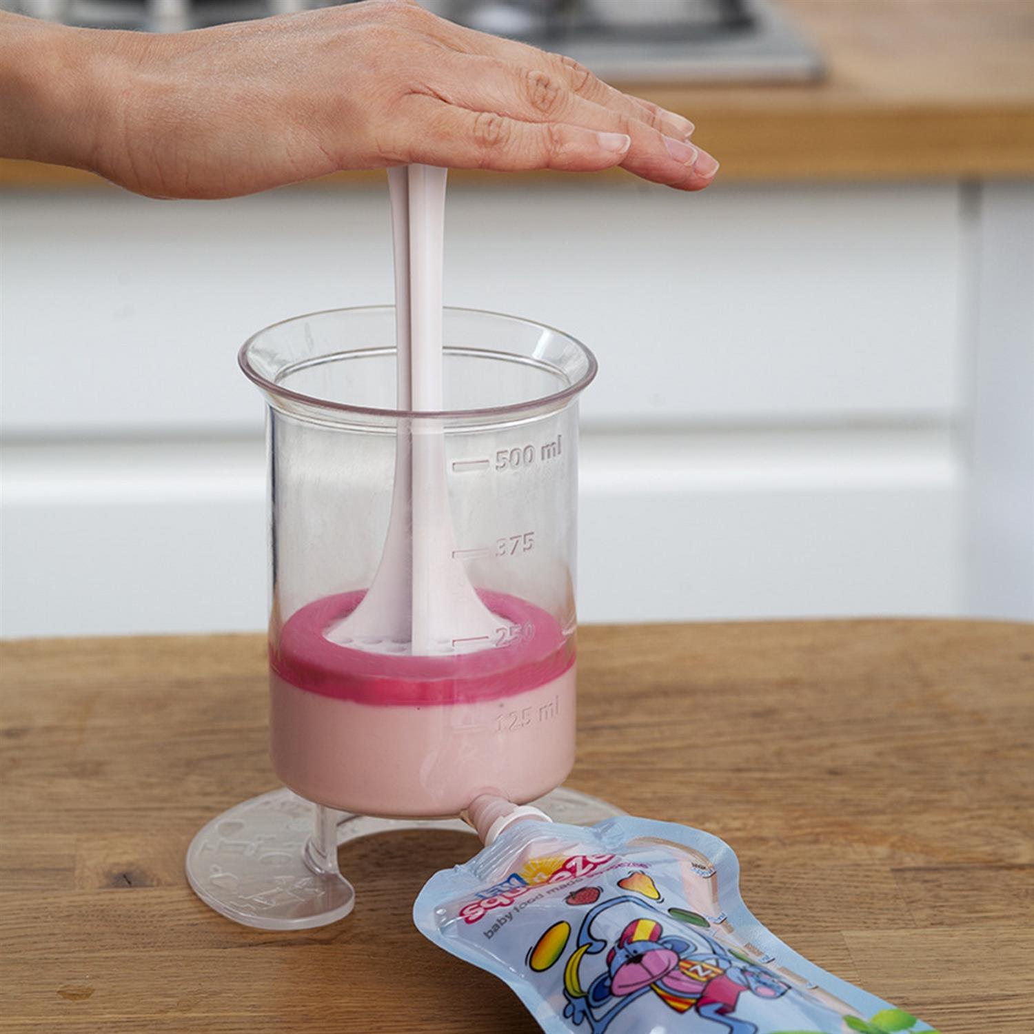 Le système de remplissage est particulièrement simple à manipuler et permet la préparation rapide de la nourriture pour bébé. En quelques minutes, les ingrédients peuvent être mixés et versés directement dans les pochettes – sans grand effort. L’ensemble est conçu pour une utilisation intuitive, afin de faciliter le quotidien souvent stressant avec des enfants.