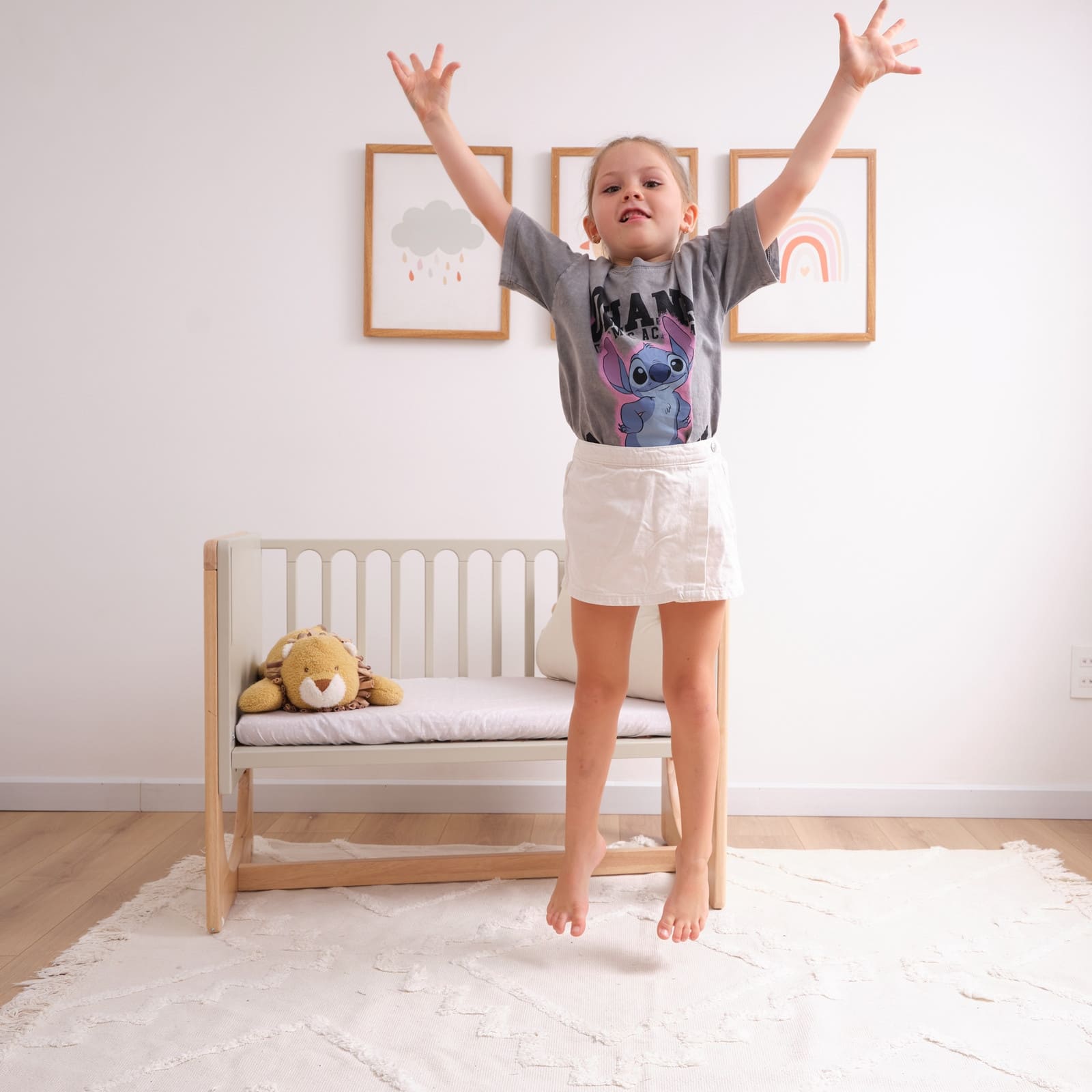 Le tour de lit n'est pas inclus dans la livraison. Le Lit d’appoint 3en1 Hato est un produit multifonctionnel qui évolue avec ton enfant et convient de la naissance à 10 ans. Son design fonctionnel et minimaliste s'inspire des principes scandinaves. Il se transforme d'abord en lit d’appoint, avec un panneau avant surélevé de 18 cm pour répondre aux normes de sécurité. Hato offre neuf réglages de hauteur pour s'adapter à la hauteur du lit des parents et se fixe solidement grâce à une sangle. D'un simple clic, le panneau avant se transforme en berceau indépendant. Au fil de la croissance de ton enfant, Hato devient canapé puis bureau. Deux roulettes sur deux des quatre pieds facilitent son déplacement. Fabriqué en hêtre certifié PEFC, en hévéa certifié FSC et en MDF, avec une peinture à l'eau. Tous les éléments nécessaires à ces transformations sont inclus dans l'emballage.