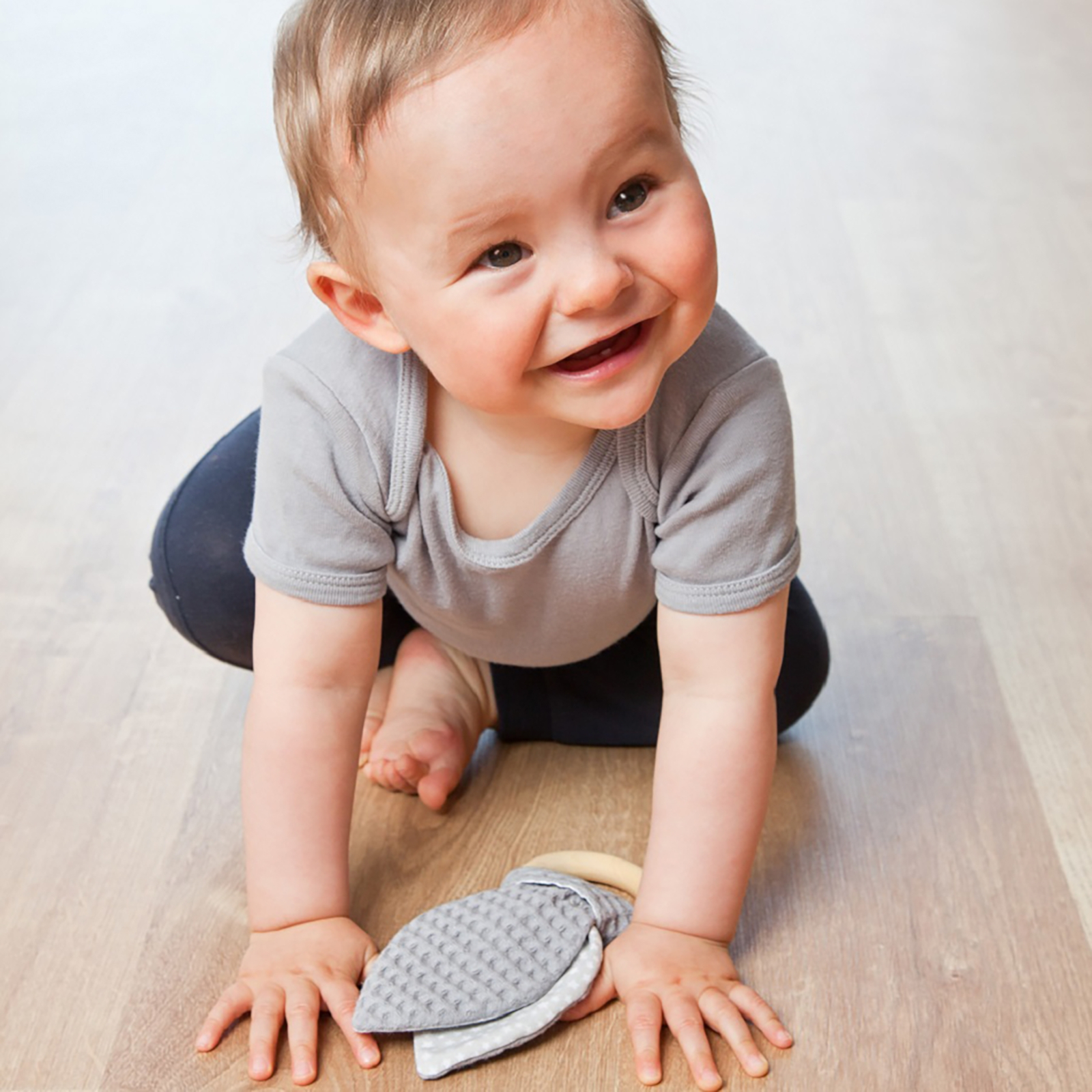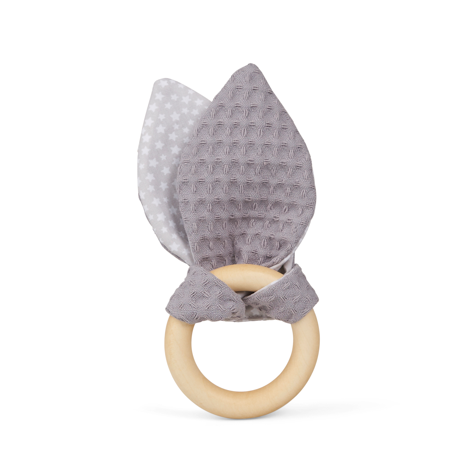 GRÜNSPECHT Anneau de préhension avec oreilles en tissu gris – Jouet pour petits explorateurs