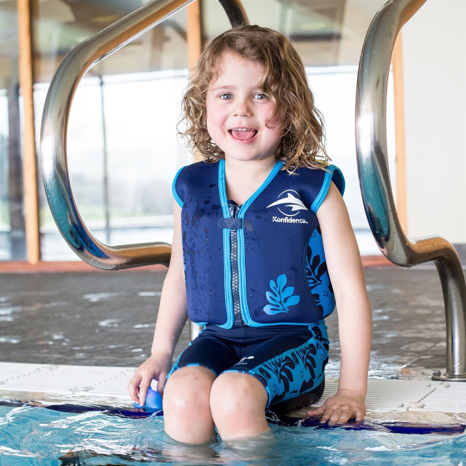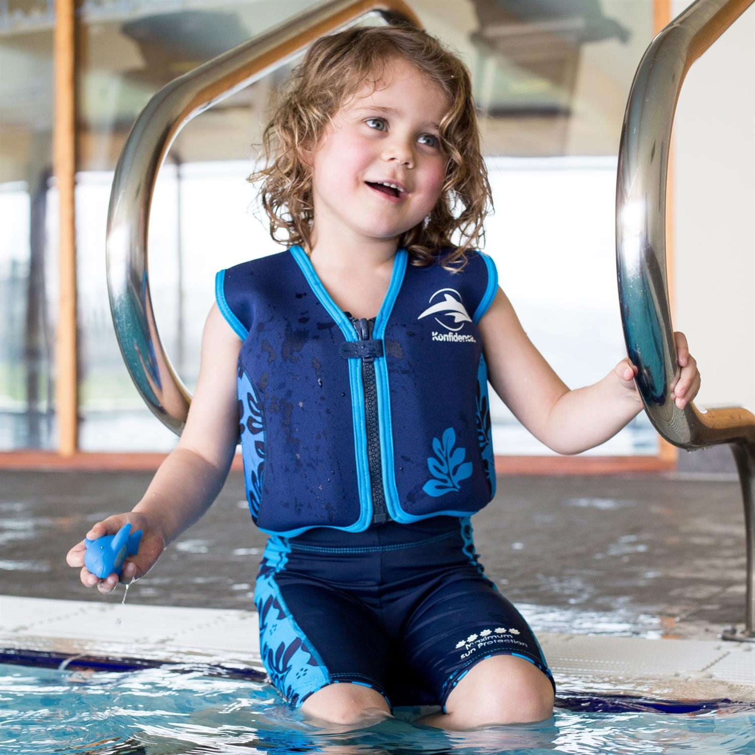 KONFIDENCE Veste de natation pour l'enfant navy palmier, 4-5 ans