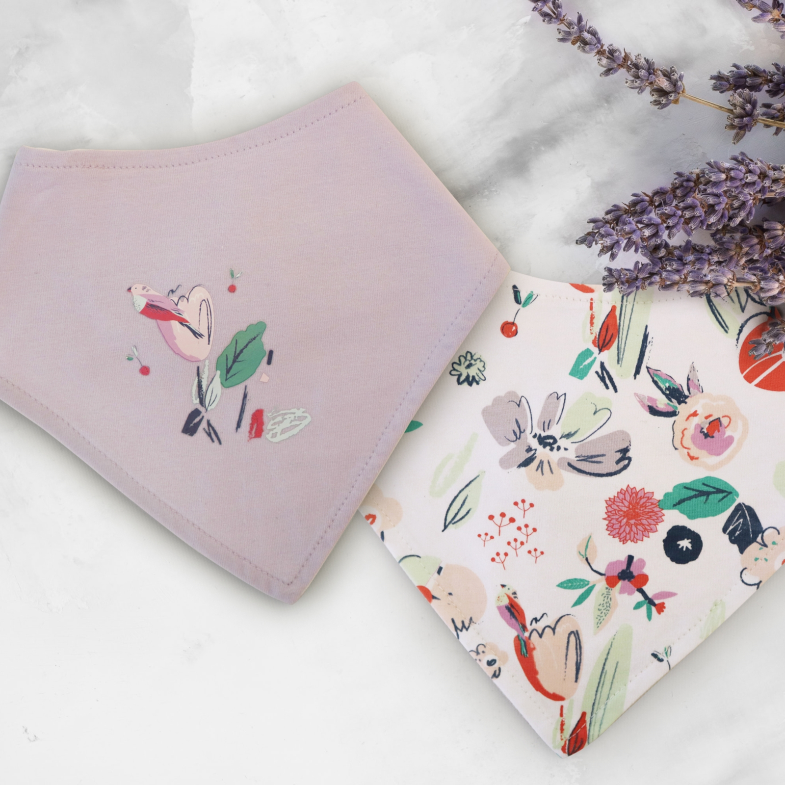 KUSHIES Bandana bavoirs lot de 2 – motif floral pour bébés