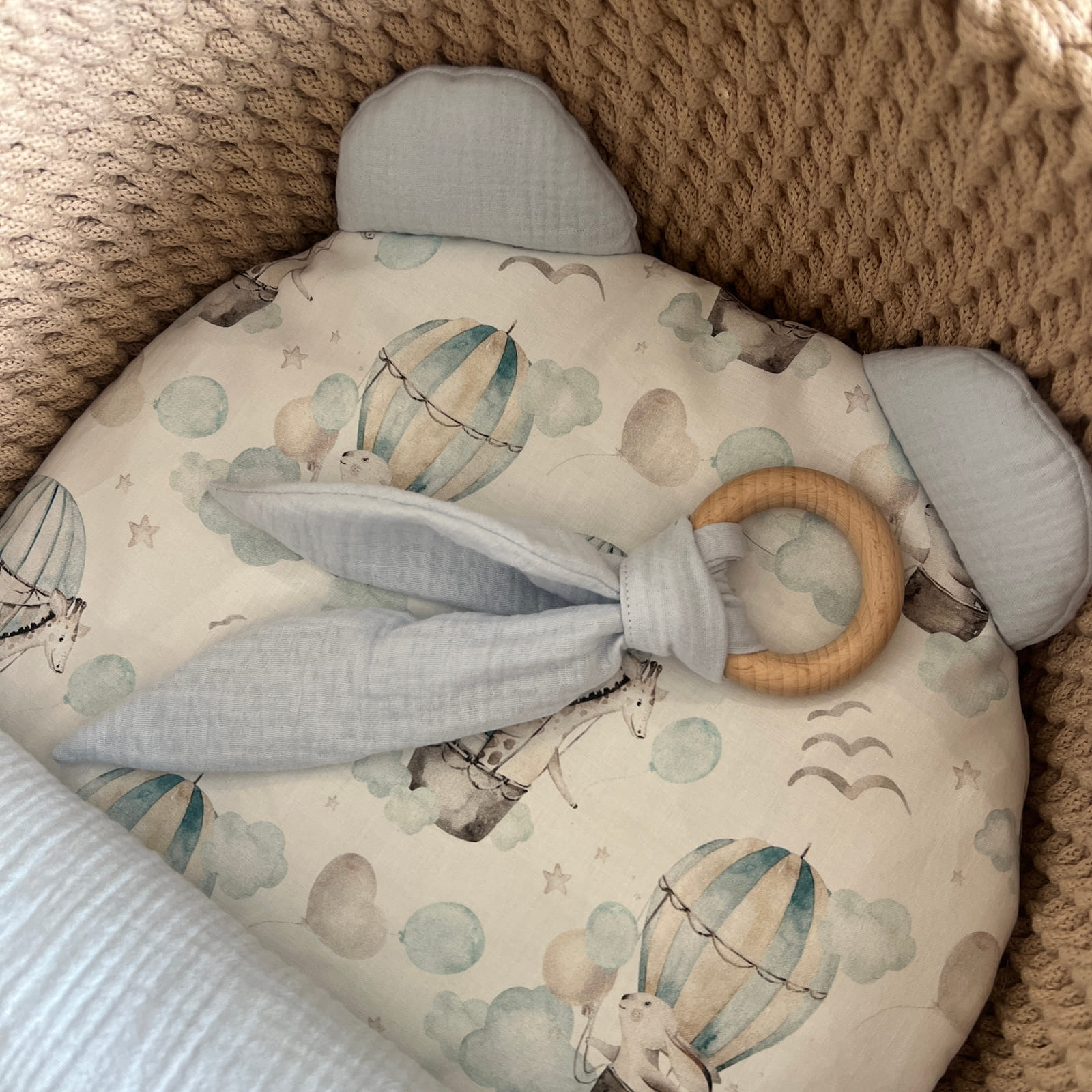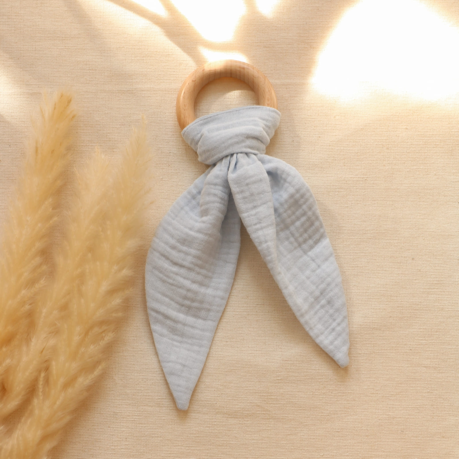 L'anneau de dentition en bois est conçu pour être tenu de manière optimale par les petites mains des bébés. Les bords arrondis et le poids léger permettent à ton enfant de saisir et d'explorer facilement le lapin. Ce design soutient en outre le développement moteur et favorise l'expérience sensorielle, ce qui est particulièrement important durant la première année de vie.
