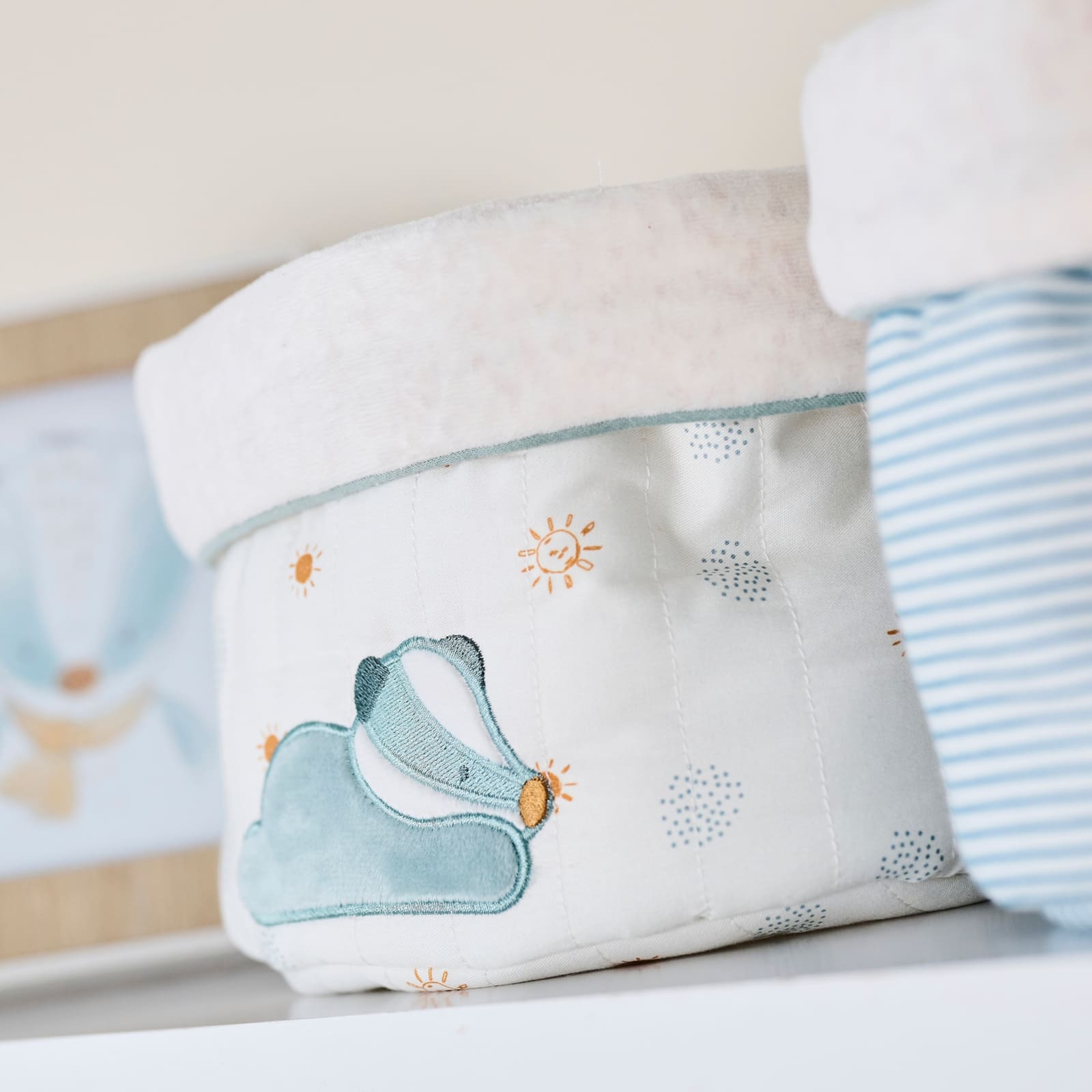 Les paniers décoratifs sont ornés de mignons motifs Felix et Leo, qui donnent à l'ensemble un look enfantin et accueillant. Les animaux dégagent de la chaleur et font des paniers un élément spécial dans la chambre de bébé. Ces détails affectueux plaisent autant aux parents qu’aux enfants et rendent le rangement plus agréable.