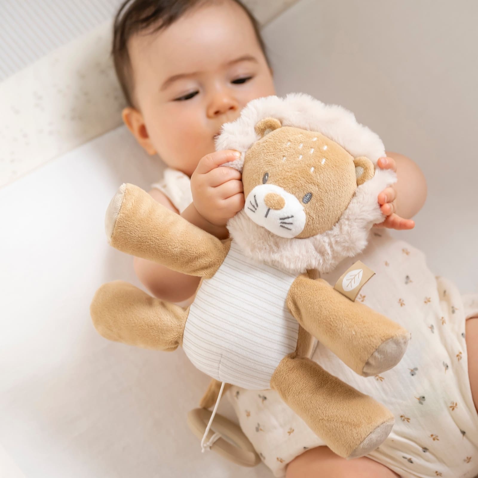 Le lion Ernest de NATTOU Flo, Ernest & Oli est bien plus qu'une simple peluche. Avec son tissu doux et respectueux de la peau, il invite les enfants à câliner et rêver. La boîte à musique intégrée joue une mélodie douce qui confère une atmosphère affectueuse aux petits rituels du coucher. La sensation agréable au toucher et l'écoute de la musique procurent un sentiment de sécurité et favorisent le bien-être ainsi que la détente des tout-petits.