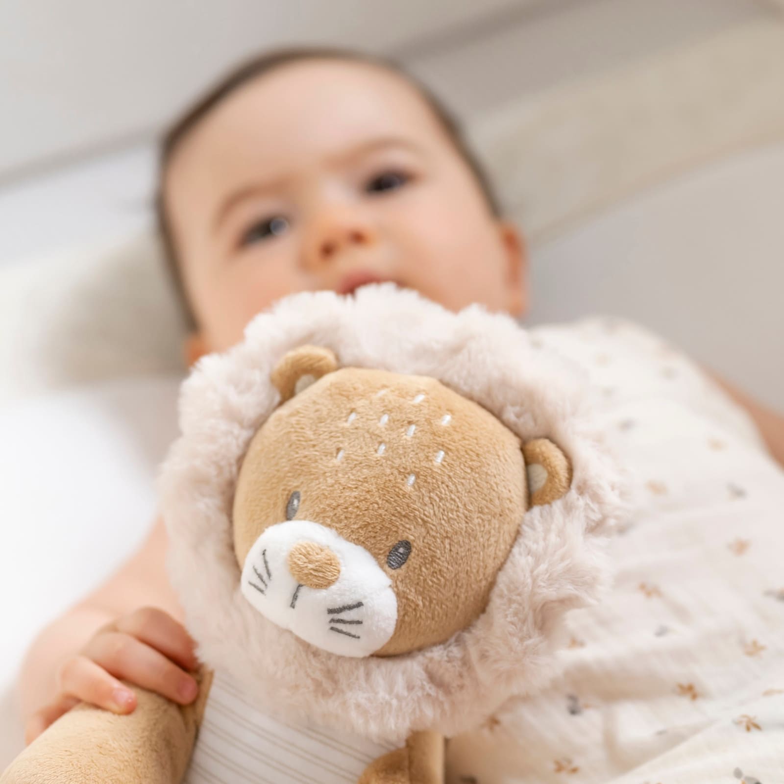 Ernest le Lion est spécialement adapté aux besoins des plus petits. Le matériau est sans danger et doux pour la peau délicate des bébés, ce qui procure une sensation agréable lors du contact corporel. Grâce au rembourrage doux et à la forme flexible, la peluche est parfaite comme aide pour l’endormissement et apporte un sentiment de sécurité dans des situations inhabituelles.