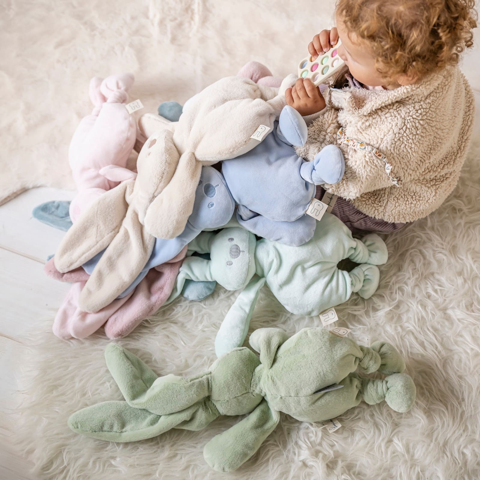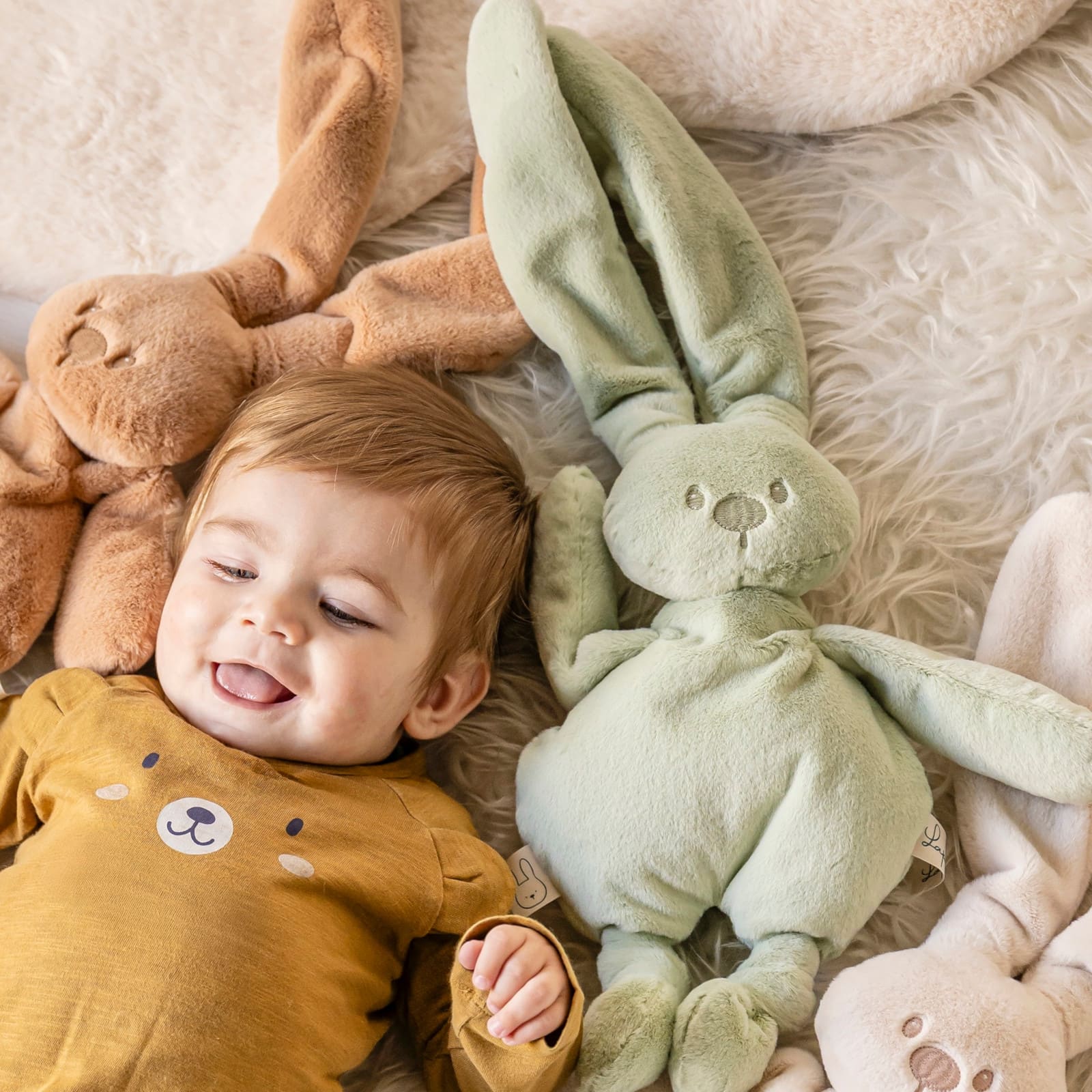 Avec ses longues oreilles tombantes et la couleur, le doudou conquiert le cœur des nouveau-nés du monde entier. L'adorable peluche offre d'innombrables possibilités de préhension et favorise ainsi le développement du sens du toucher et de la motricité. Le matériau extra-doux offre un sentiment rassurant et de sécurité pendant les premières semaines et les premiers mois. Ce doudou est le compagnon de jeu idéal pour les aventures les plus folles et le meilleur ami à câliner dans les moments difficiles.