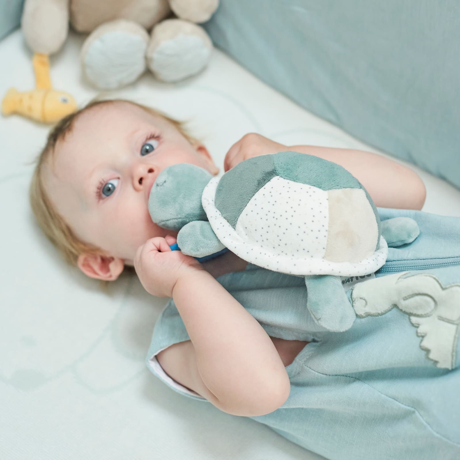 Les différentes activités encouragent votre enfant à utiliser ses petits bras et jambes pour explorer. Cela soutient le développement moteur global en stimulant la préhension, le tirage et le mouvement. La tortue accompagne ainsi votre bébé de manière ludique dans la découverte de ses capacités motrices.