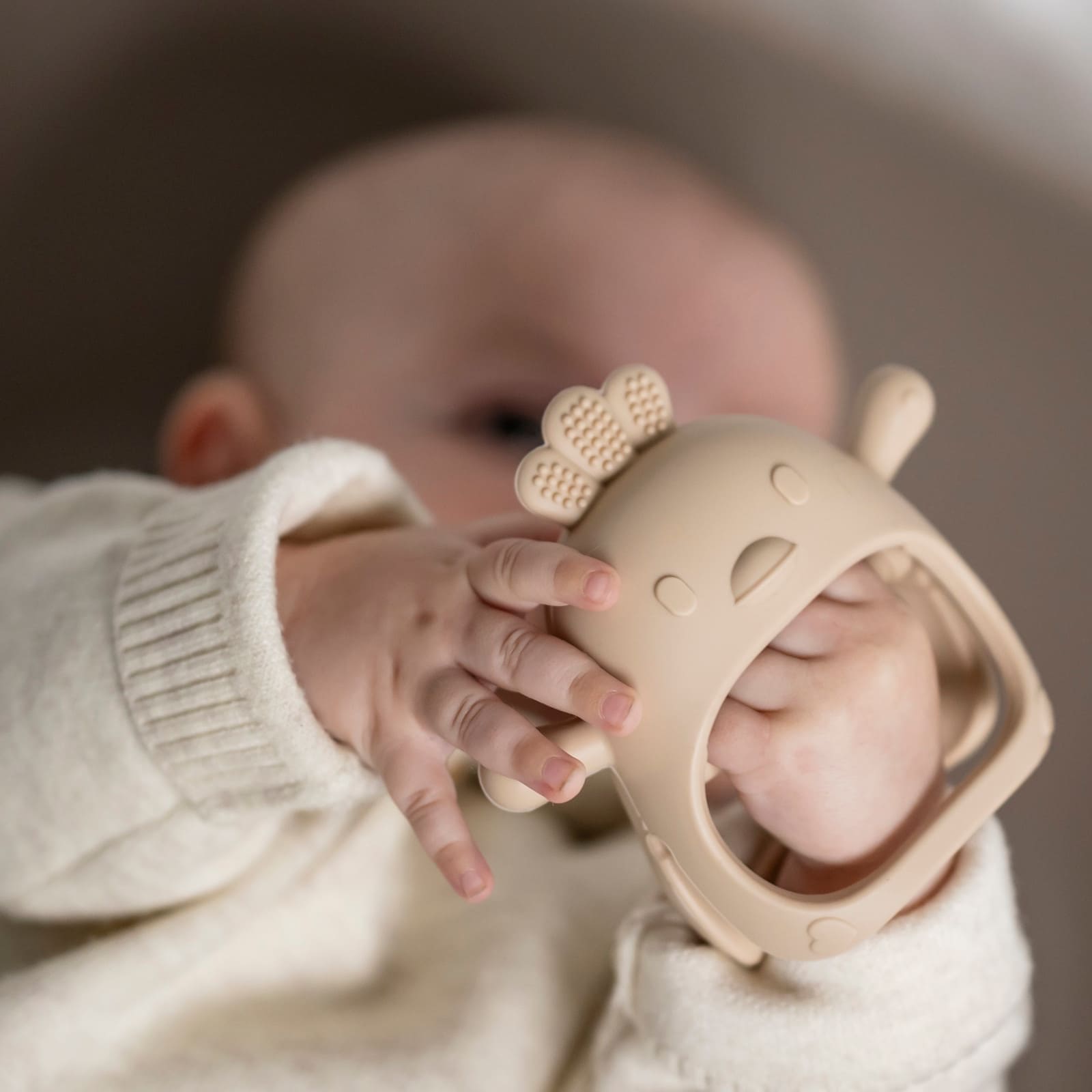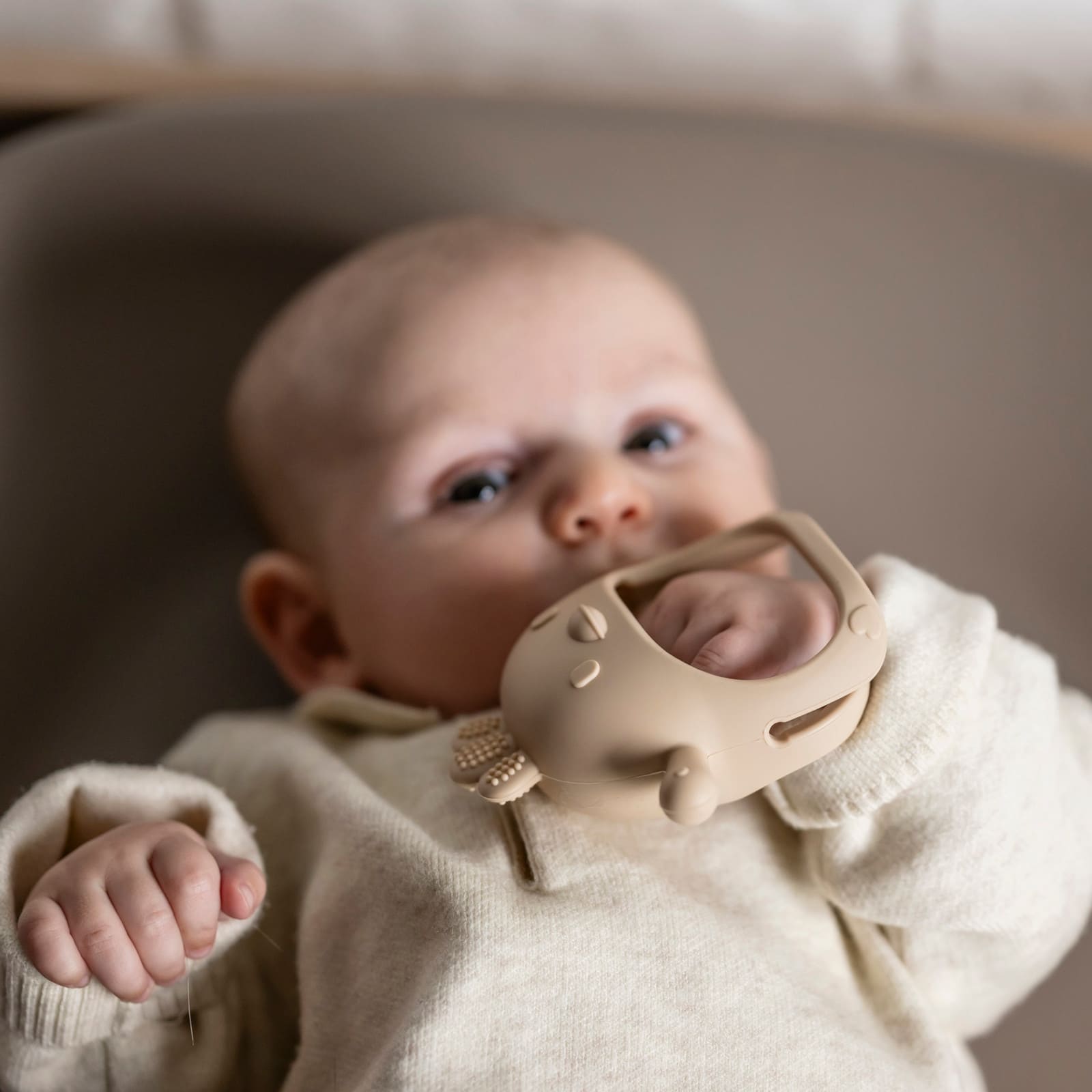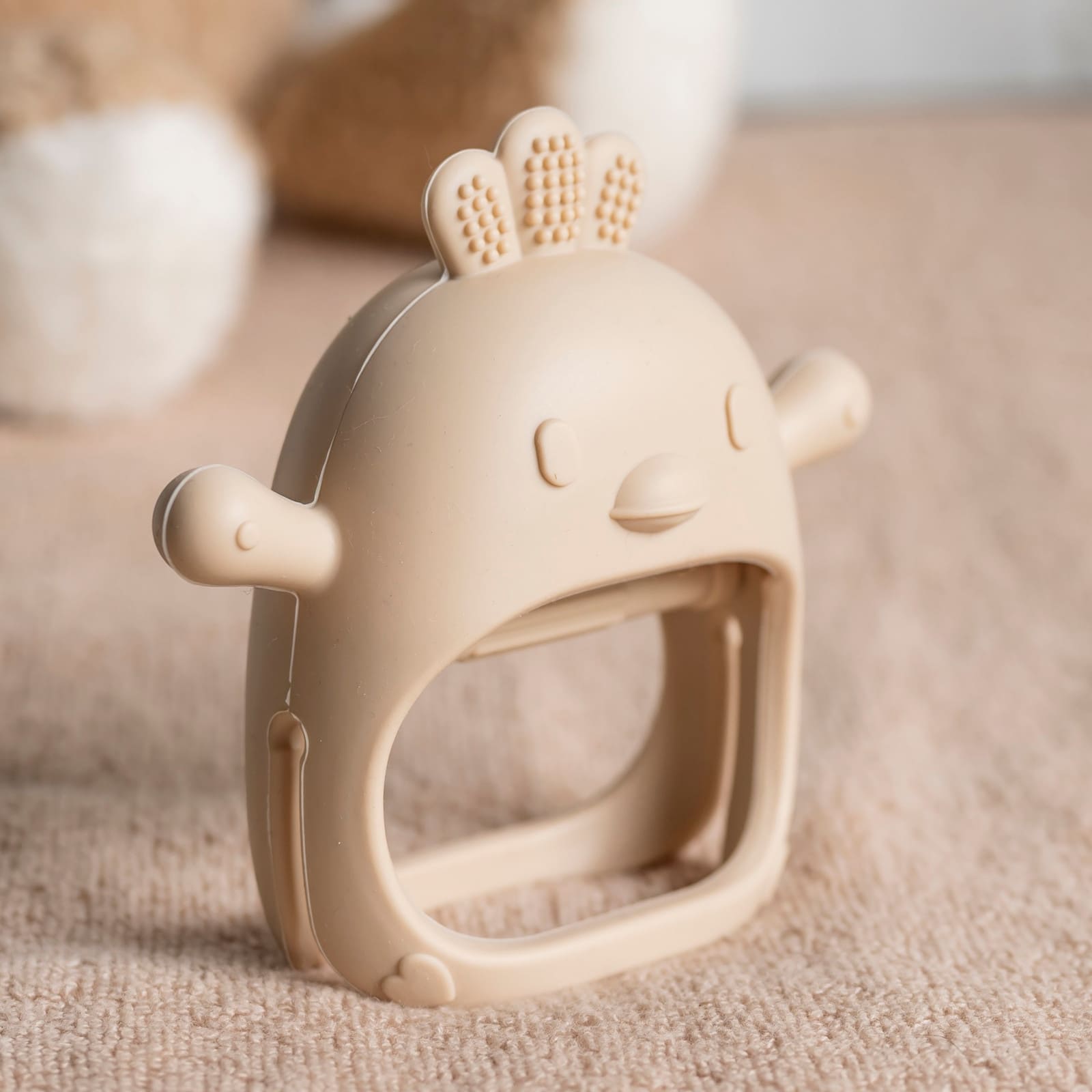 L’anneau de dentition séduit non seulement par sa fonctionnalité, mais aussi par son joli design discret en beige neutre. Les motifs en relief amusants invitent à l’exploration et favorisent le développement sensoriel des bébés. Ainsi, l’anneau de dentition devient un petit jouet qui rend le processus de dentition agréablement varié.