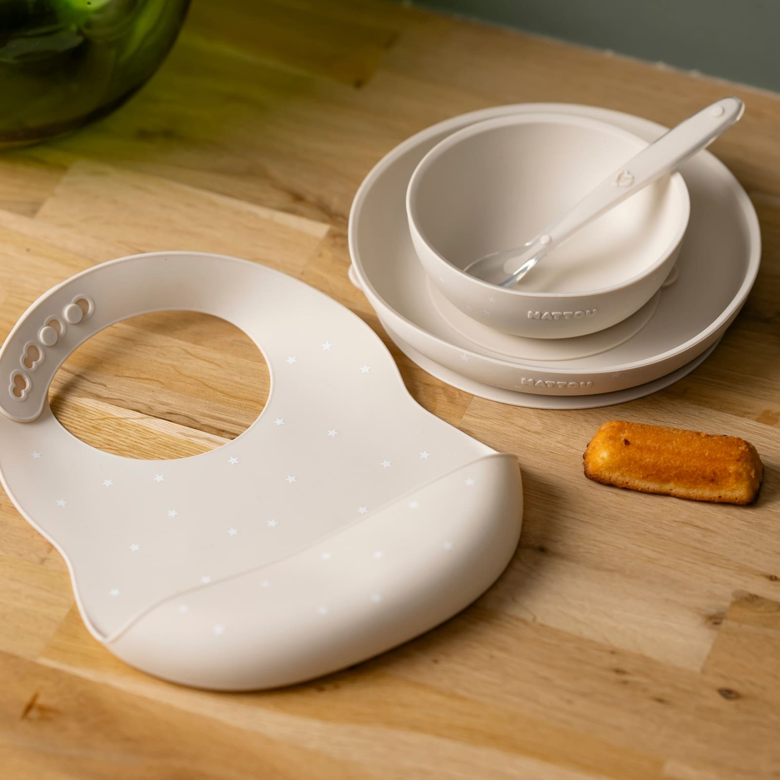 NATTOU SILICONE Set de vaisselle avec bavoir beige