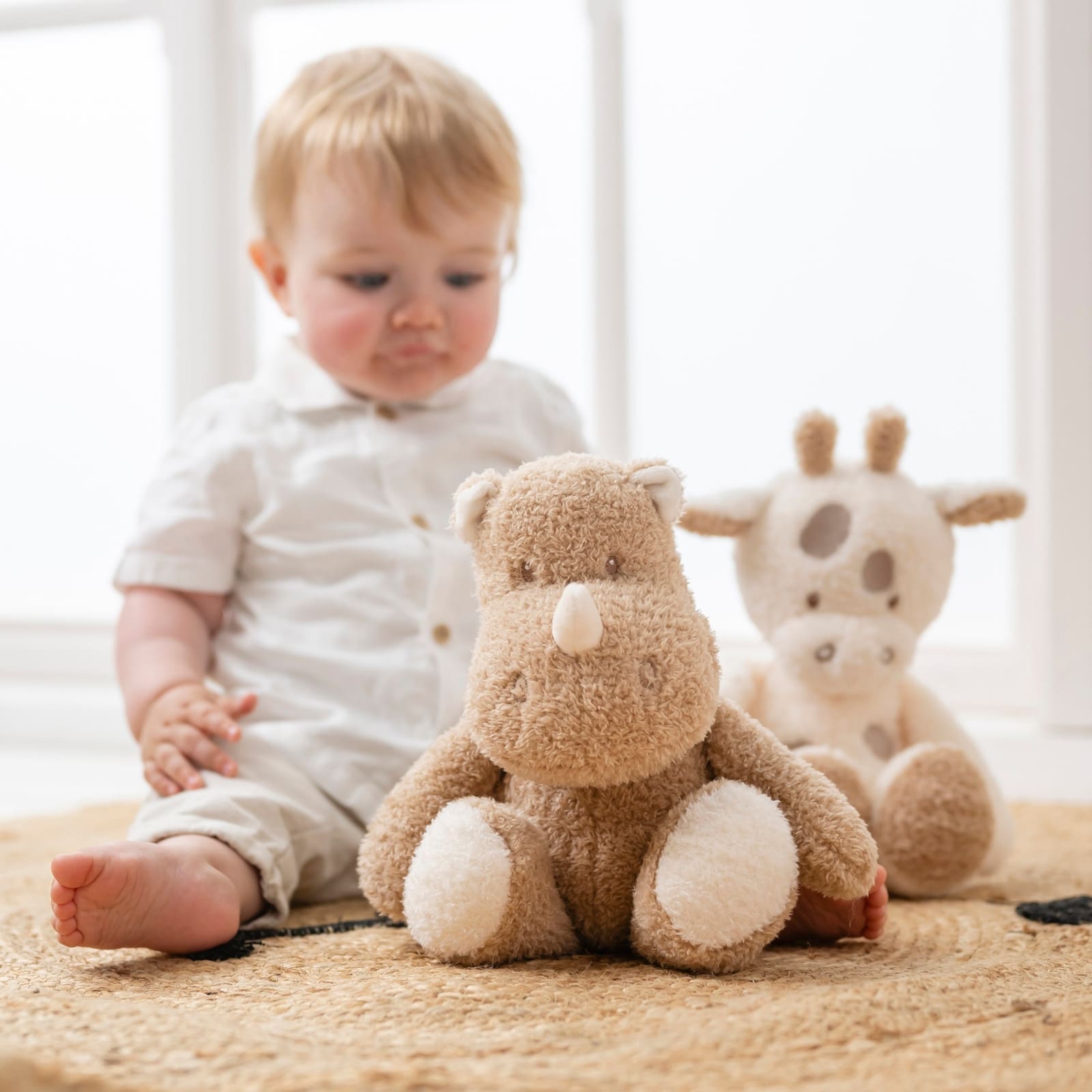 La peluche NATTOU est un compagnon idéal aussi bien à la maison qu’en déplacement. Que ce soit pour s’endormir, en voyage ou pendant le temps de jeu – le rhinocéros apporte réconfort et sécurité. En raison de son poids léger, les bébés et les tout-petits peuvent la porter facilement eux-mêmes et ainsi renforcer leur motricité fine de manière ludique.