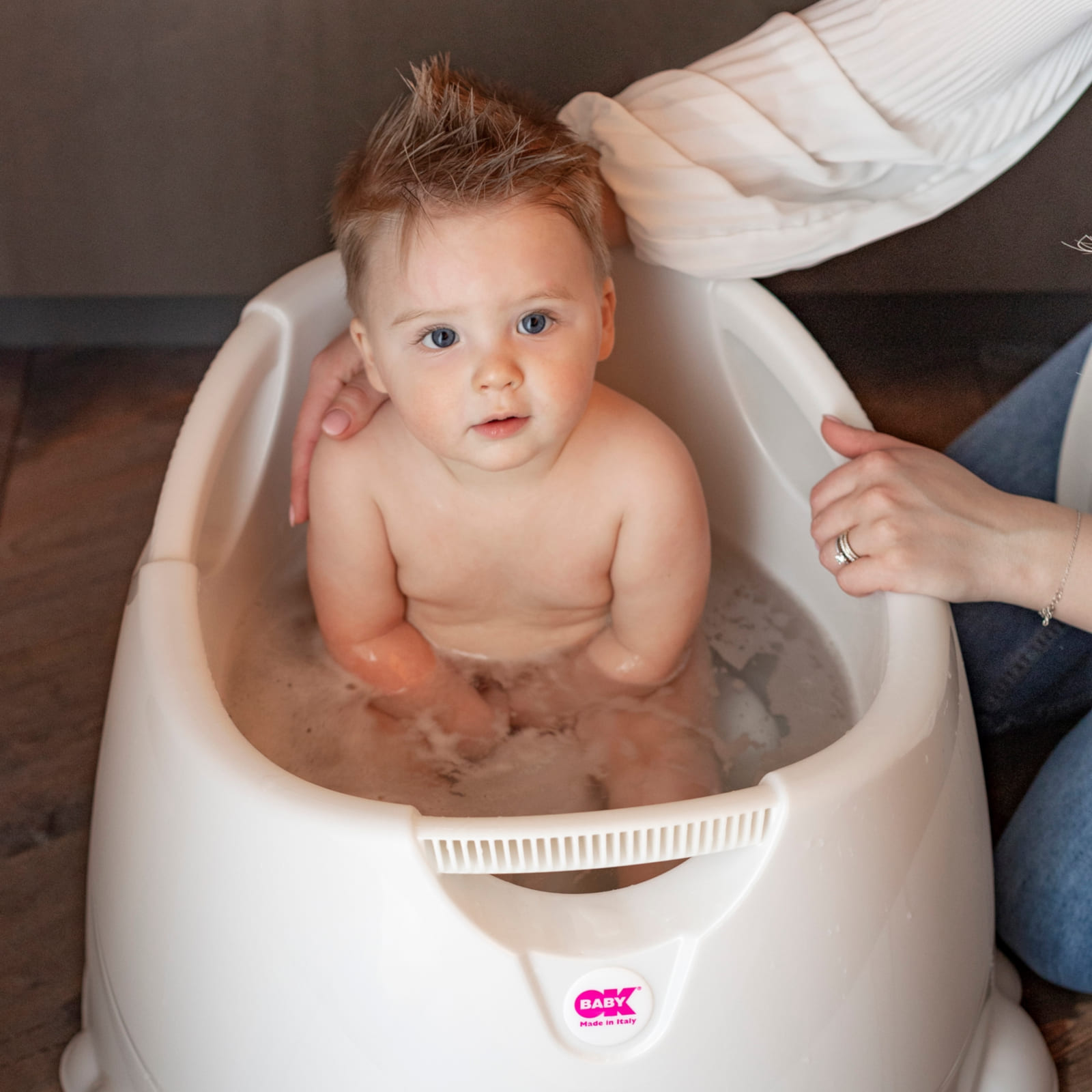 La baignoire OK BABY Opla en blanc classique séduit par sa taille généreuse et son design ergonomique. Elle offre à votre bébé suffisamment d’espace pour se sentir bien et s’amuser en toute sécurité dans l’eau. La forme a été spécialement conçue pour s’adapter aux positions naturelles de couchage des nourrissons, rendant le bain particulièrement agréable pour votre enfant.