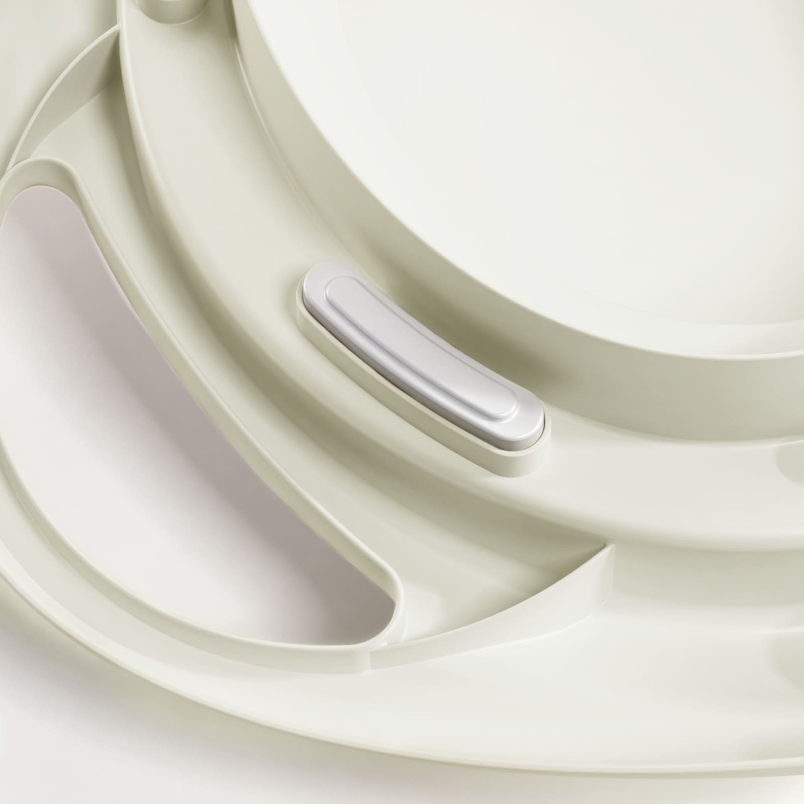 Le OK BABY WC-Sitz est équipé de plots en caoutchouc antidérapants qui maintiennent le siège fermement et en toute sécurité au centre des toilettes. Cela empêche tout glissement et augmente la sécurité lors de l'utilisation.