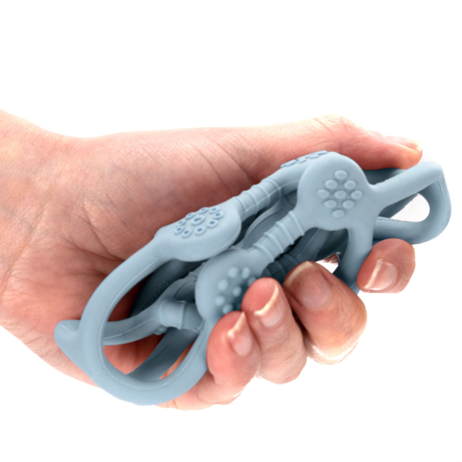 L'anneau de dentition en silicone Bite&Play n'est pas seulement fonctionnel, il est aussi particulièrement pratique. Sa taille maniable permet de l'emporter à tout moment – que ce soit à la maison ou en déplacement. Il se nettoie facilement pour rester toujours prêt à être utilisé. De plus, le matériau employé se distingue par son innocuité et sa sécurité pour les bébés.