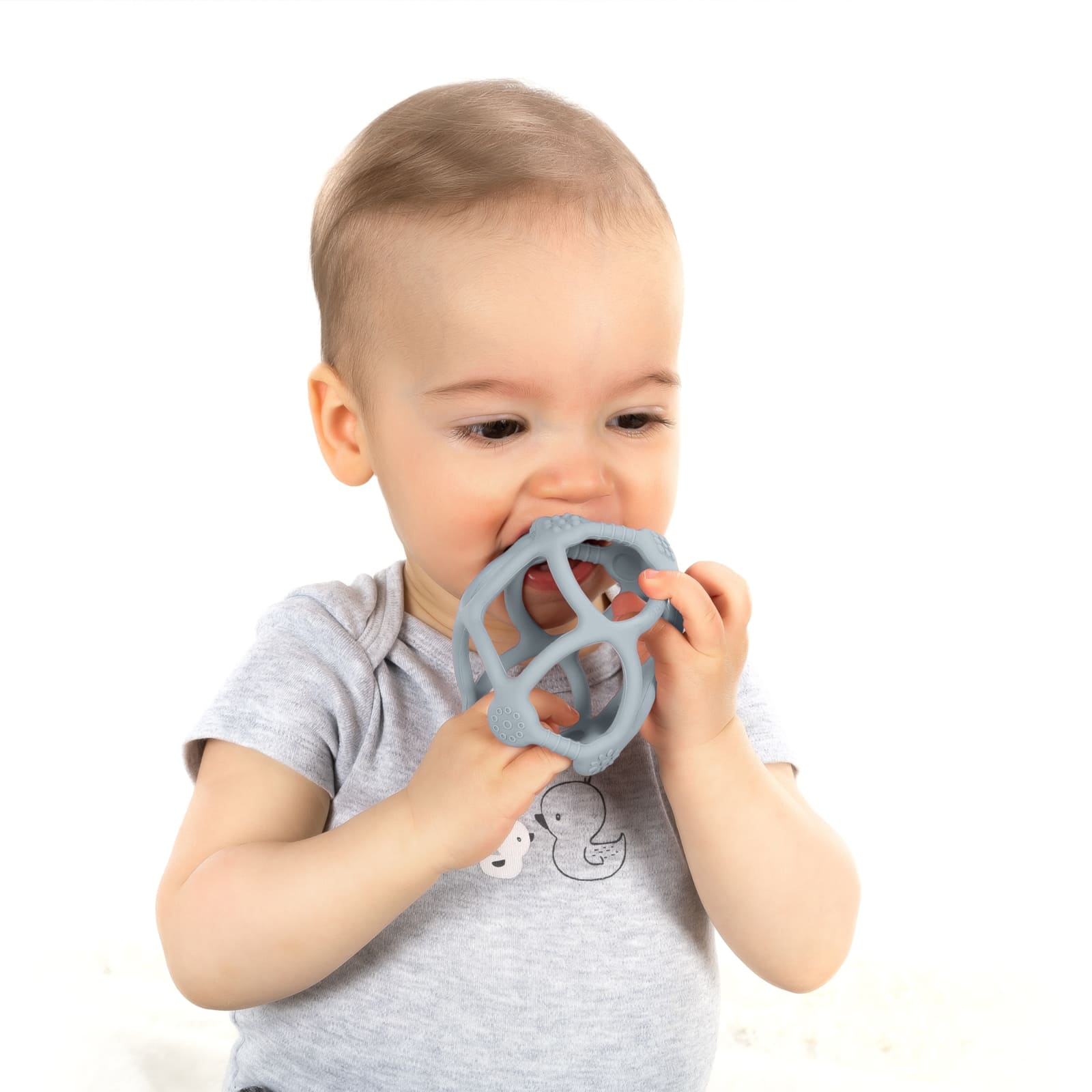 Anneau de dentition en silicone REER Bite&Play bleu – compagnon idéal lors de la dentition