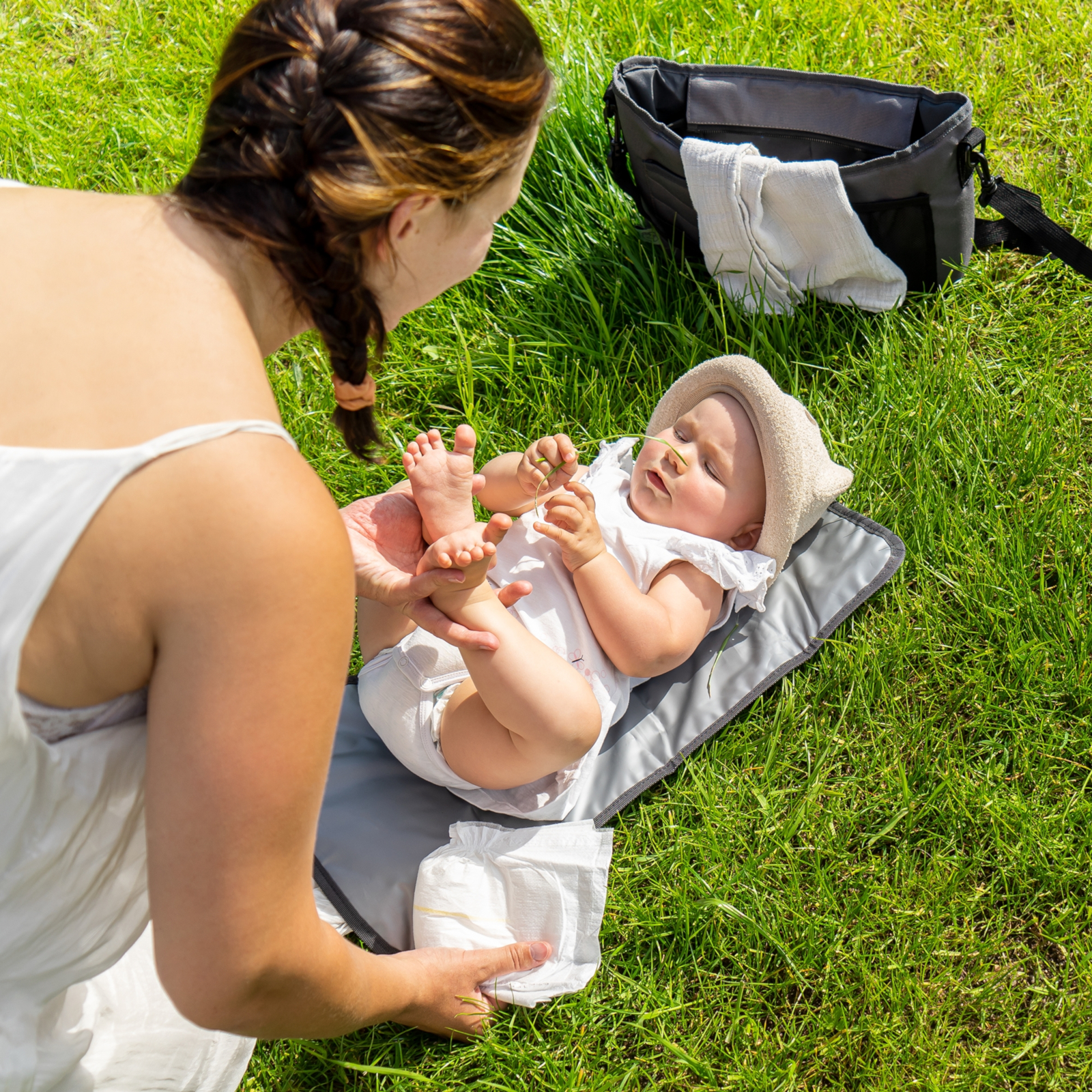 Le contenu de la livraison comprend un tapis à langer adapté, qui offre un endroit hygiénique et confortable pour changer bébé en déplacement. Le tapis à langer peut être facilement retiré, nettoyé et replié. Il est donc le compagnon parfait pour des pauses change spontanées en dehors de chez soi.