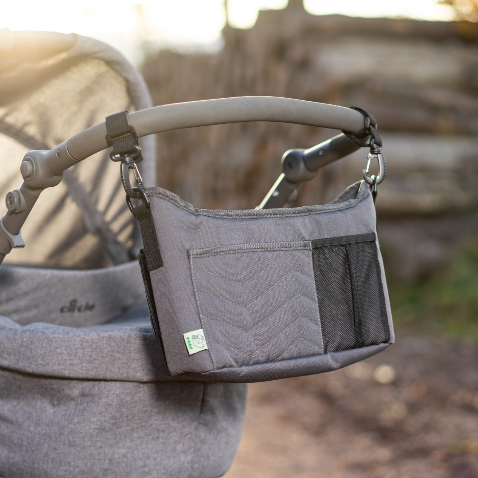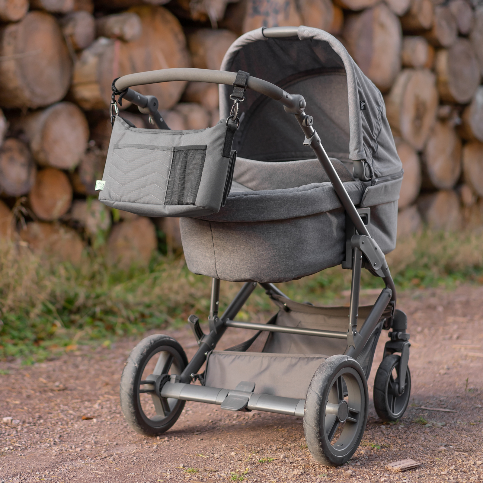 La fixation à la poussette est rapide et simple grâce à des sangles et fermoirs solides garantissant une tenue sûre. En alternative, le sac peut être porté en sac bandoulière, ce qui offre un grand confort grâce à une sangle d’épaule réglable. L'organisateur s’adapte ainsi de manière flexible à vos besoins.