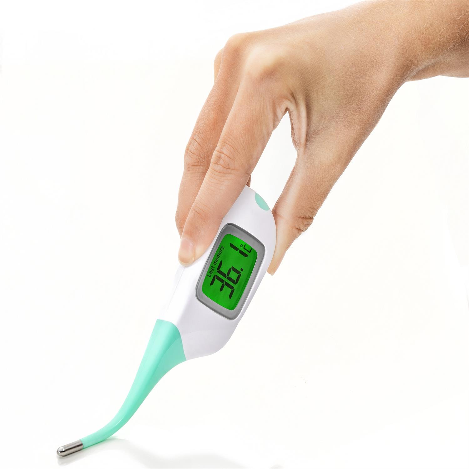 Le thermomètre dispose d’une pointe flexible, qui facilite une mesure douce et confortable. Cette flexibilité apporte plus de confort, notamment lors de l’utilisation chez les enfants et les patients sensibles. De plus, l’appareil émet des signaux optiques et acoustiques en cas de température élevée supérieure à 37,6 °C, vous alertant immédiatement en cas de fièvre.