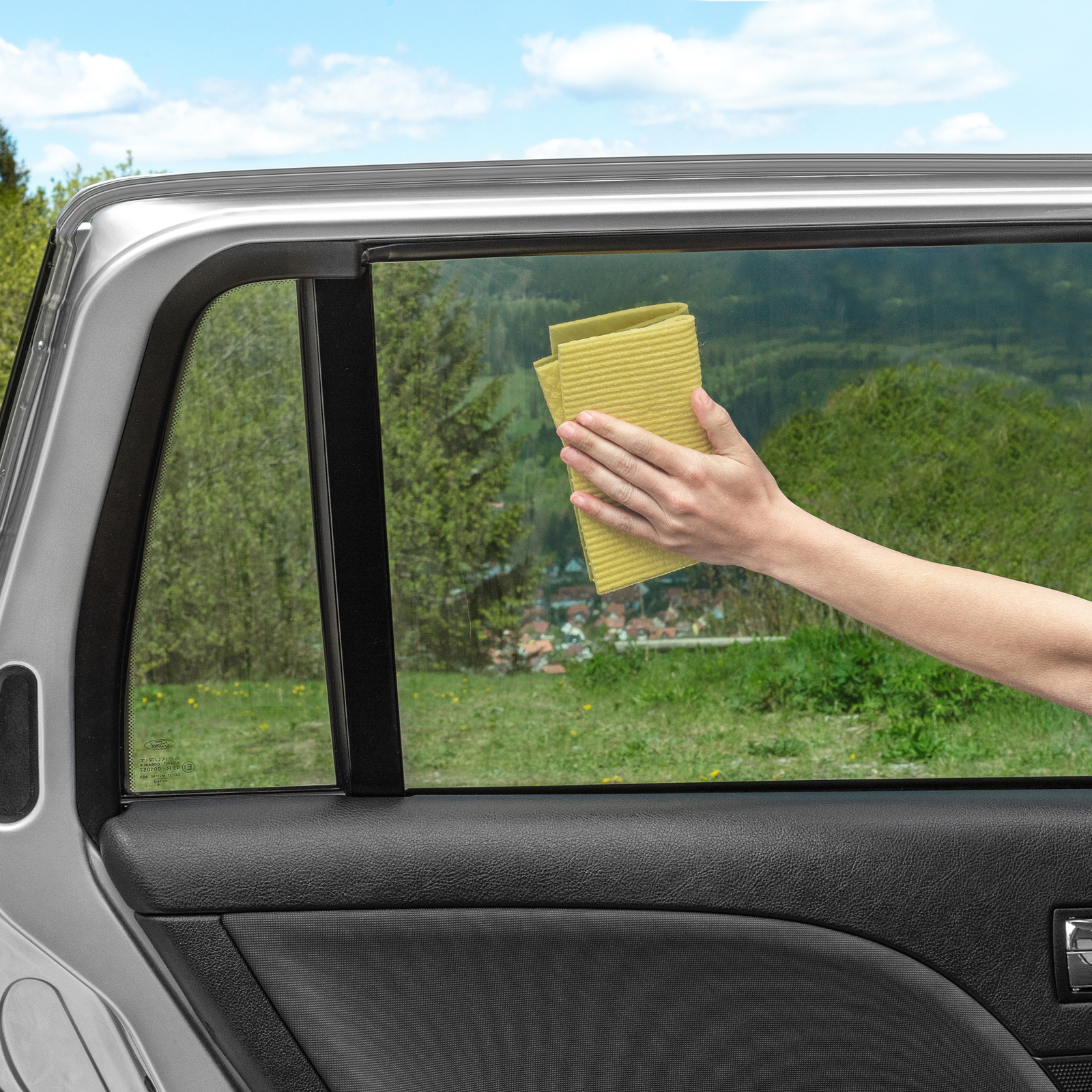 La forme adaptée convient à la plupart des fenêtres de voiture et garantit ainsi une tenue stable. La protection solaire peut ainsi être utilisée plusieurs fois et rapidement repositionnée, sans laisser de traces.