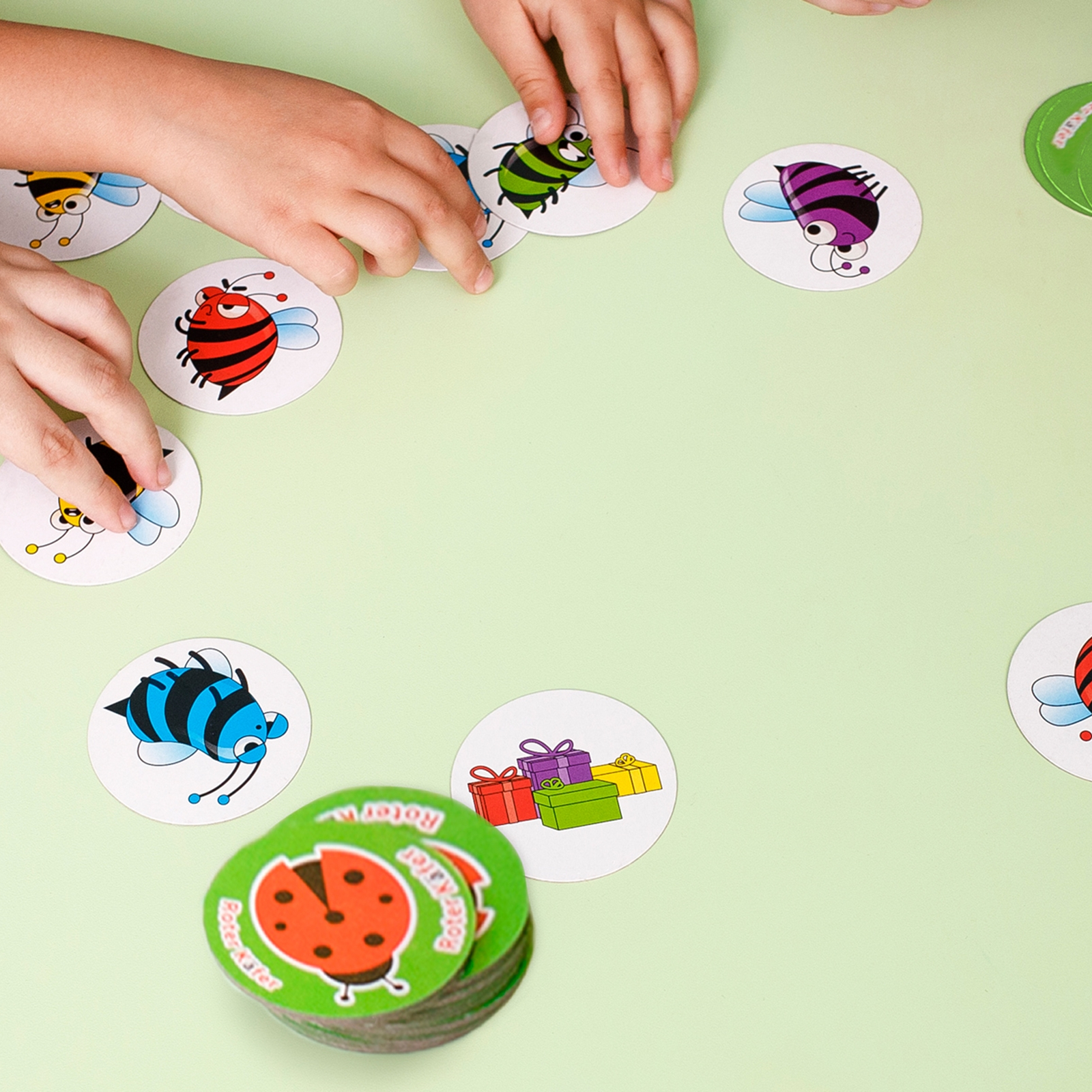 ROTER KÄFER Jeu de société Les Abeilles Folles est un jeu amusant et rapide, qui offre du plaisir autant aux enfants qu’aux adultes. Le but est de mettre différents objets dans le bon ordre le plus rapidement possible, en se basant sur les couleurs des jetons colorés. Avec son design vivant et ses règles simples, il assure des parties variées pleines de suspense et de divertissement.